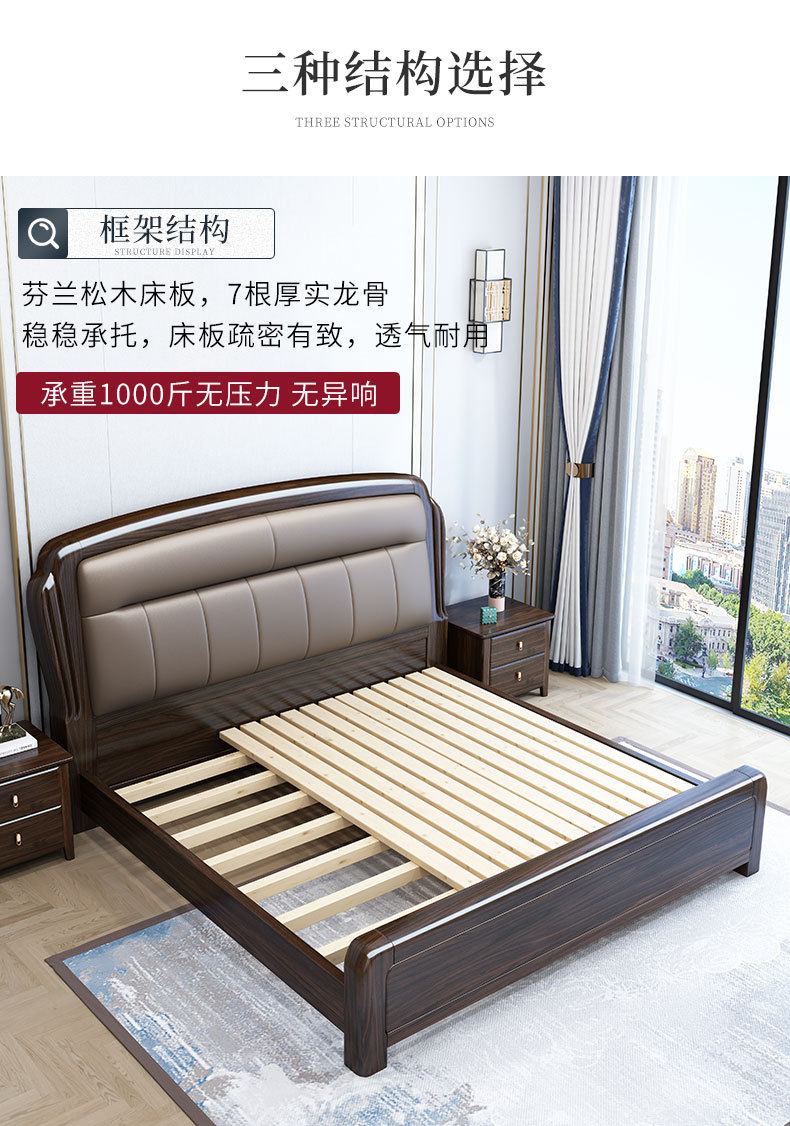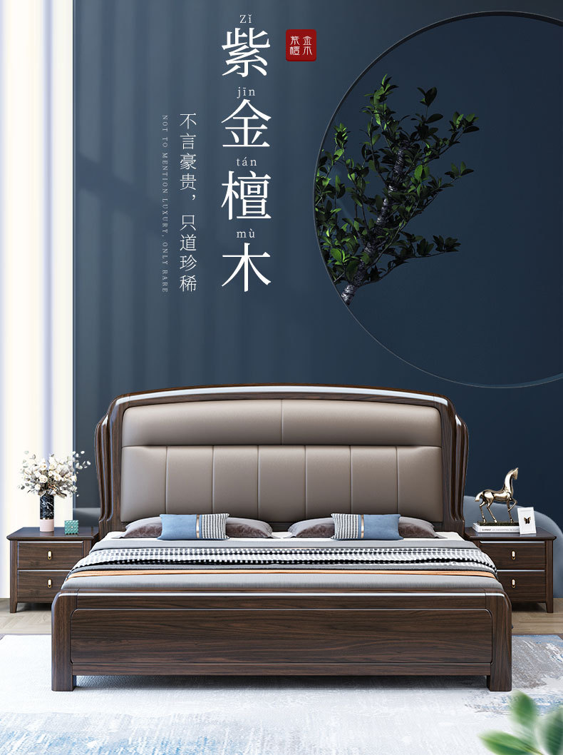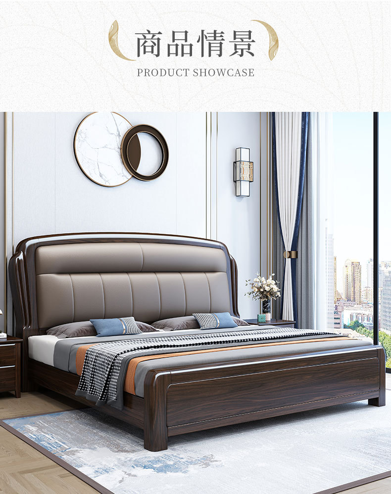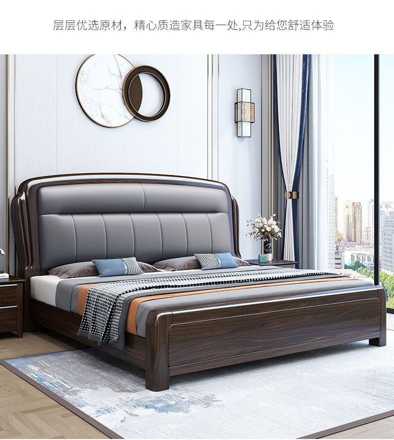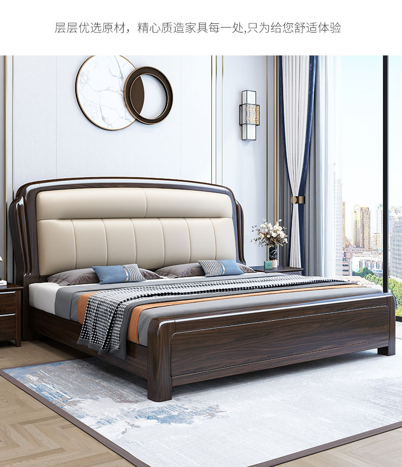 자금단 원목 침대 1.8m 더블 침대 1.5m 가죽 침대 소프트 패키지 마스터 침실 중국식 원목 침대 제조업체 직판스토어 가기