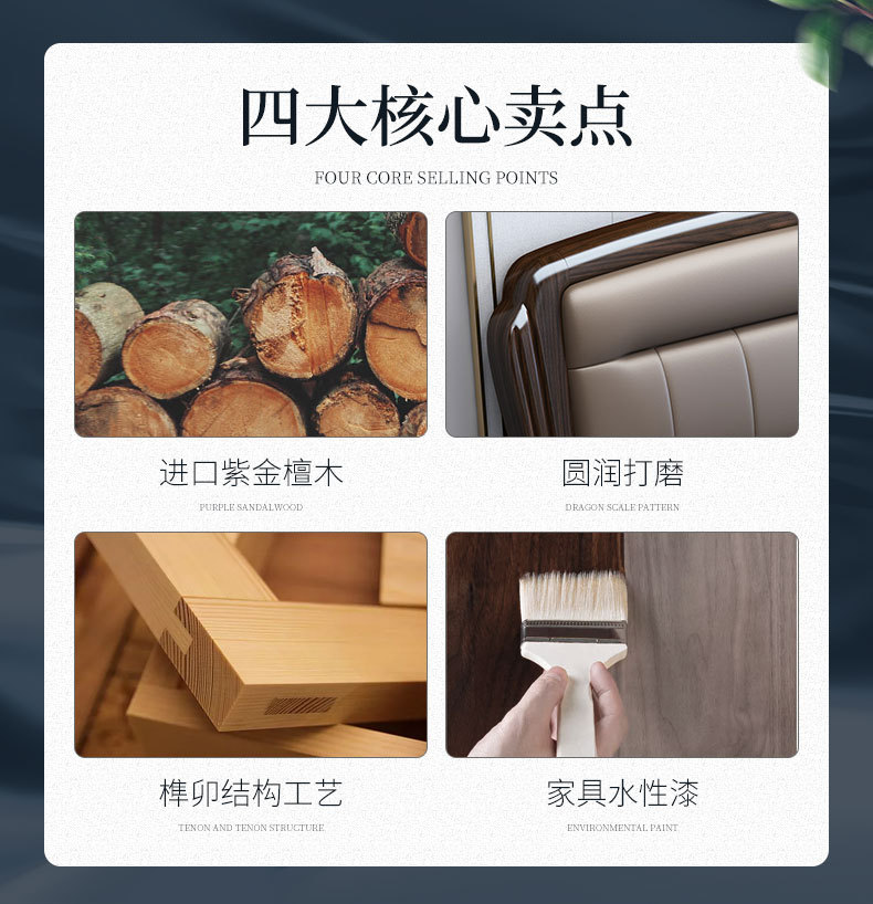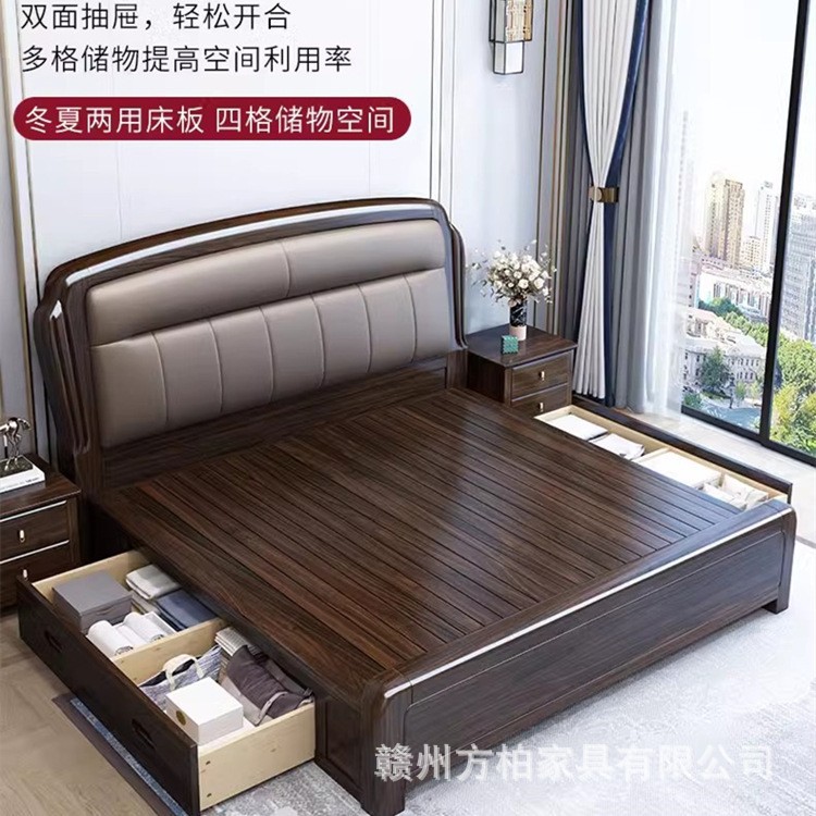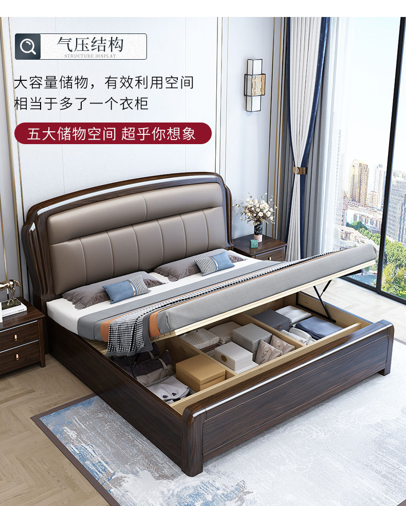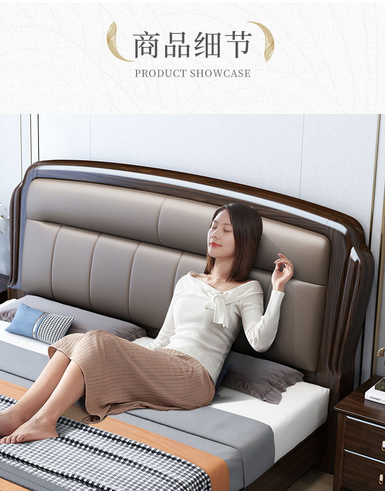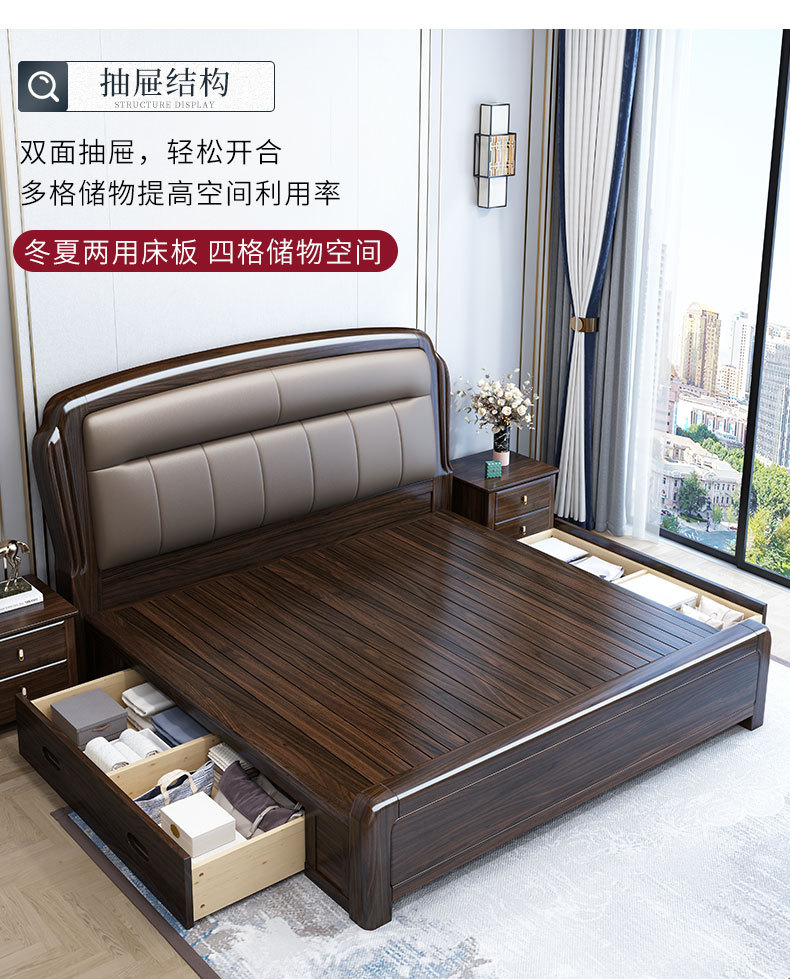 자금단 원목 침대 1.8m 더블 침대 1.5m 가죽 침대 소프트 패키지 마스터 침실 중국식 원목 침대 제조업체 직판스토어 가기