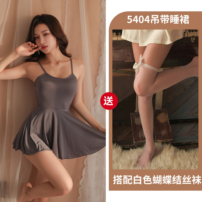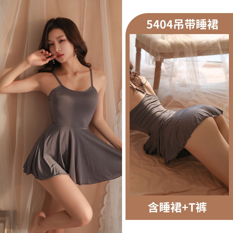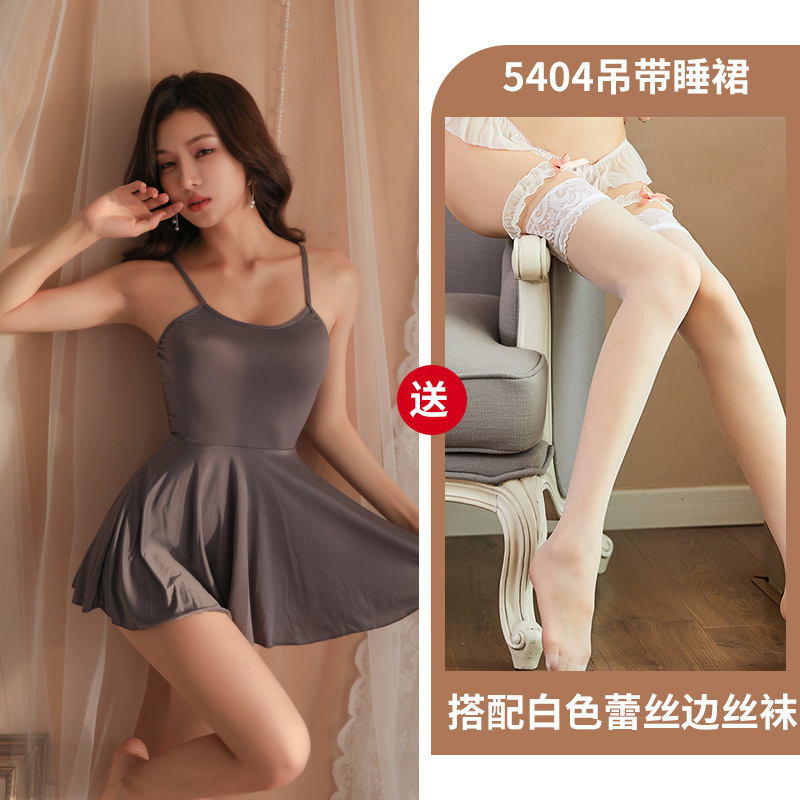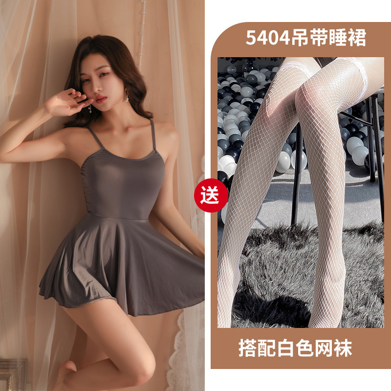 새로운 스트랩 아이스 실크 나이트 드레스 투명 섹시한 란제리 섹시한 매력적인 유니폼 세트 작은 가슴 큰 유혹 잠옷스토어 가기