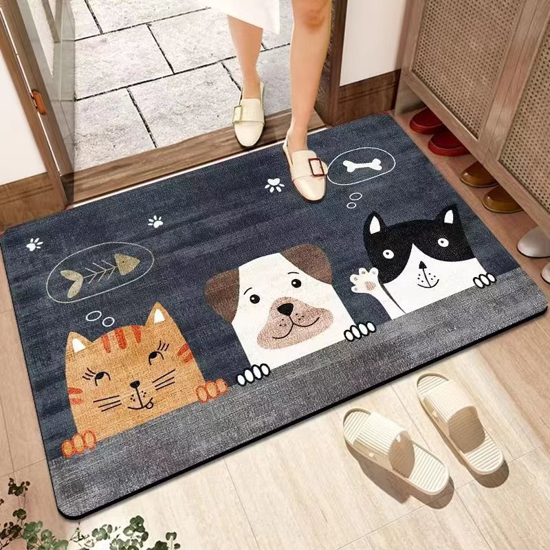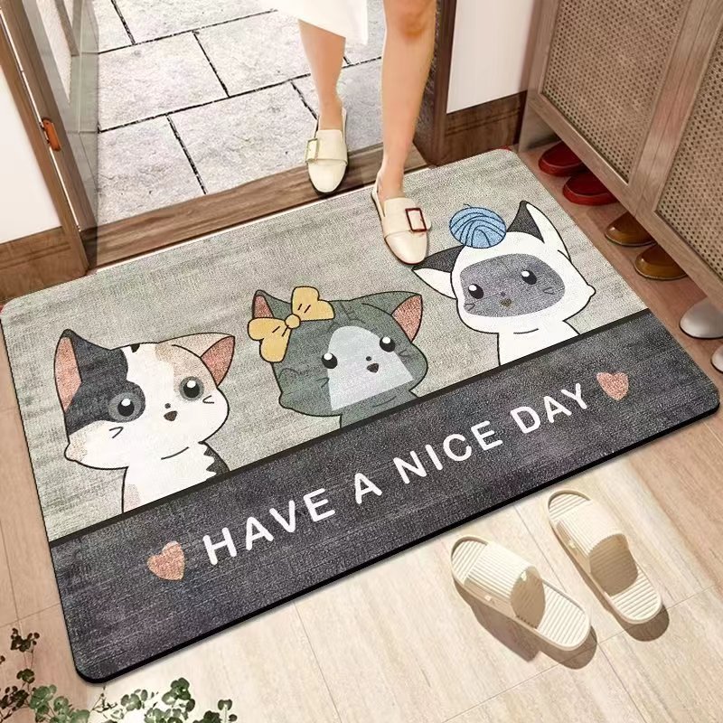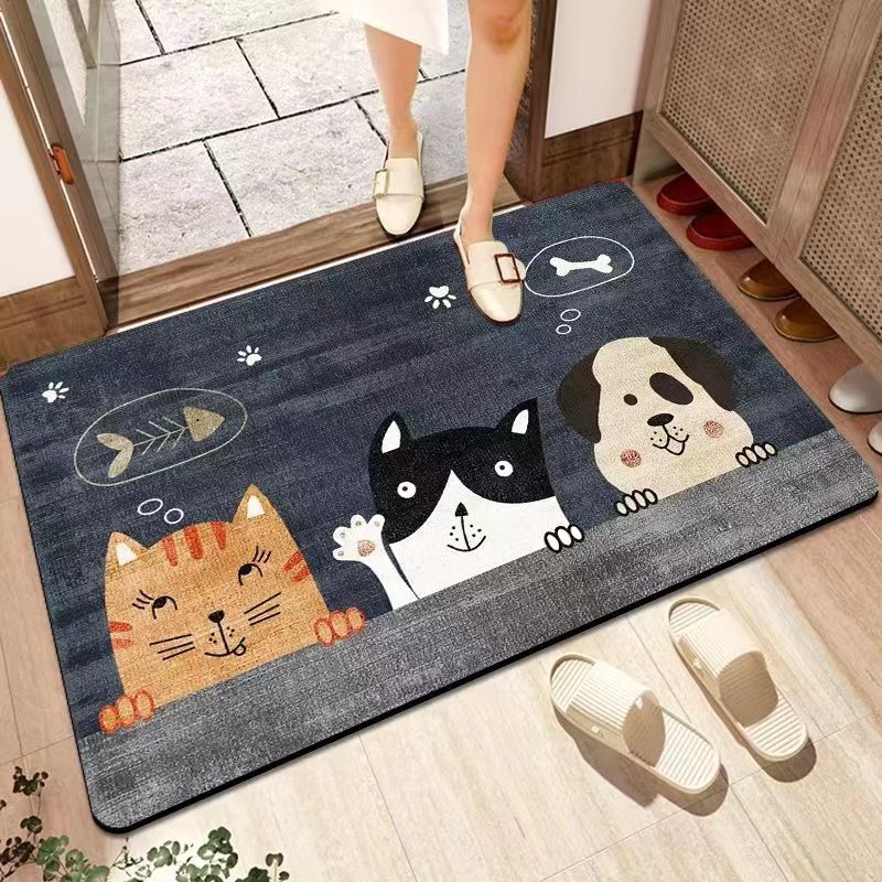 만화 기술 천 가정용 바닥 매트 입구 문 입구 카펫 매트 귀여운 애완 동물 바닥 매트 화장실 문 마찰 발 매트