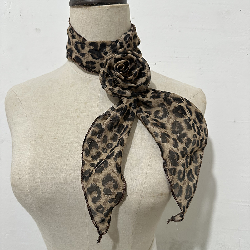 새로운 긴 작은 실크 스카프 로즈 클래식 레오파드 컬러 칼라 버클 꽃 장식 아트 스타일 블로거 스카프 착용스토어 가기