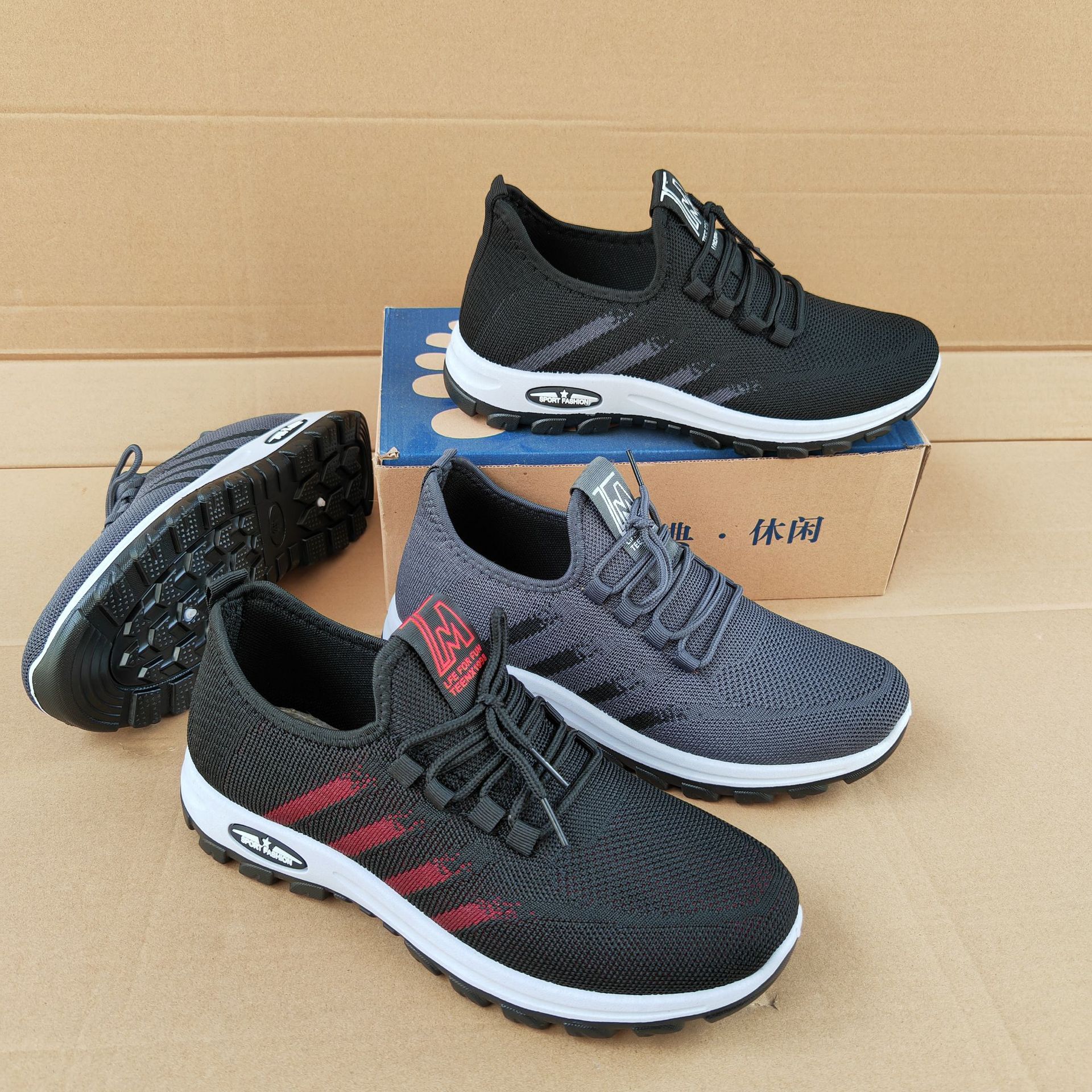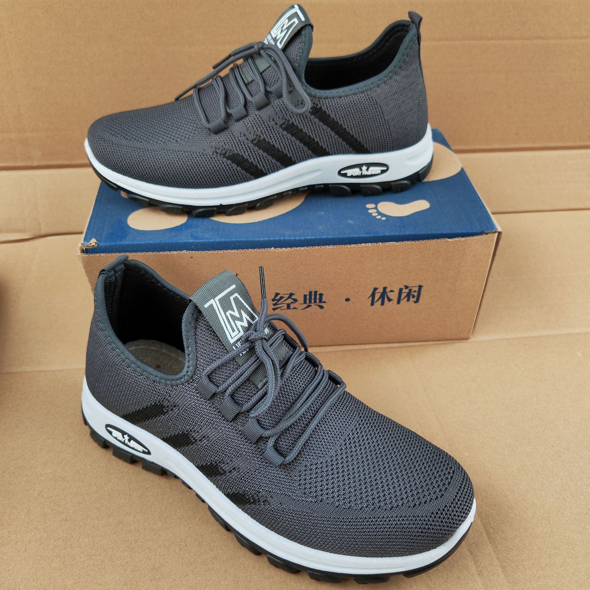 2023 년 가을 새로운 스펀지 플라이 짠 앞 레이스 업 남성 스포츠 신발 플레이트 내마모성 재고 신발 도매