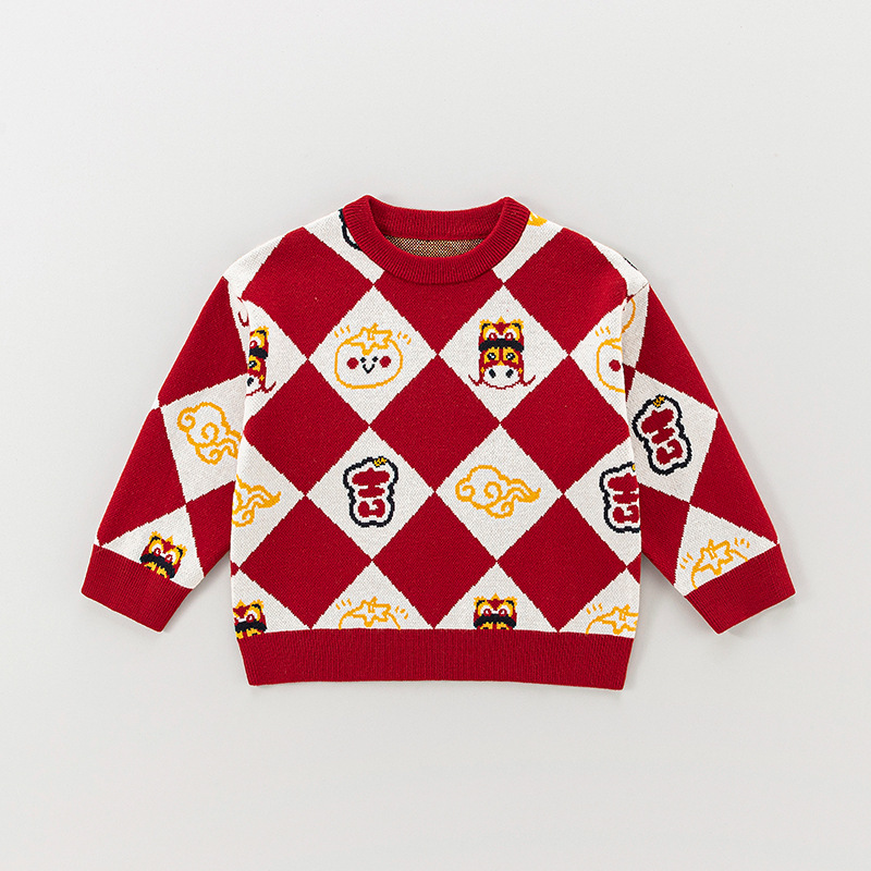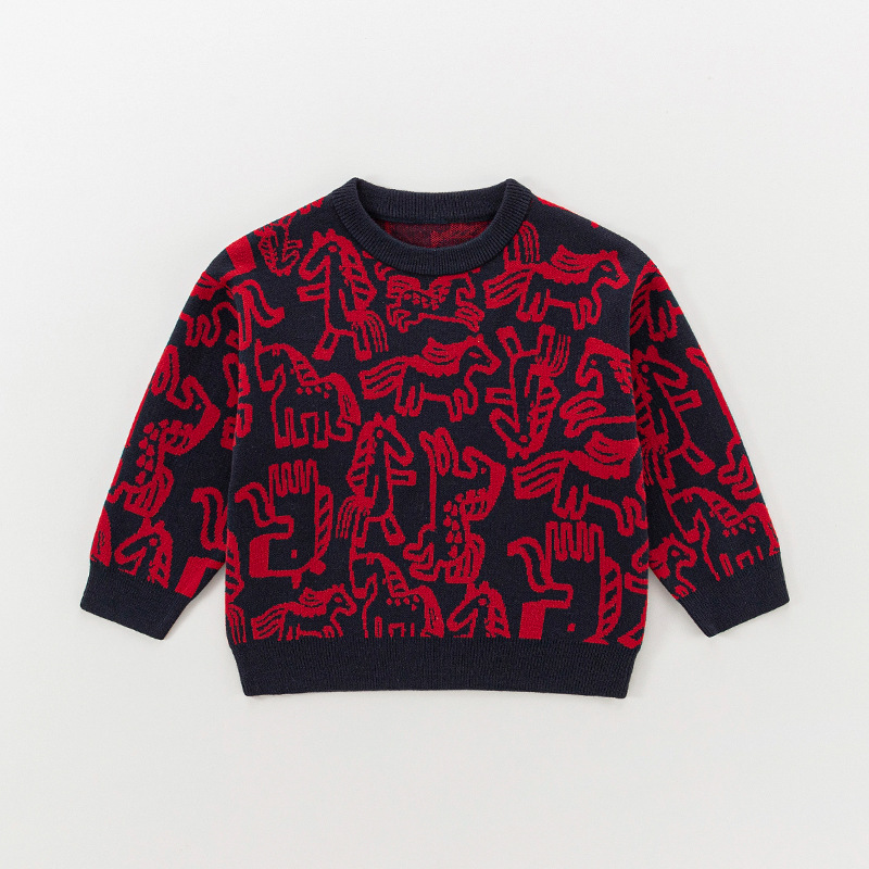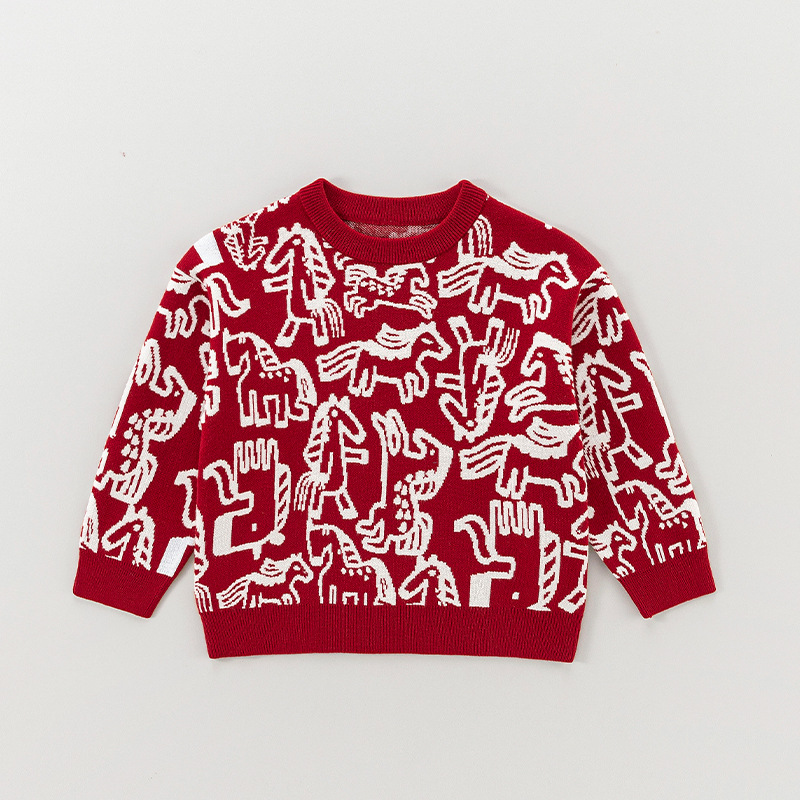 어린이용 스웨터 겨울용 따뜻한 남아용 줄무늬 긴팔 니트웨어 아기용 두꺼운 겨울옷 A급 여아용 라운드넥 겨울옷