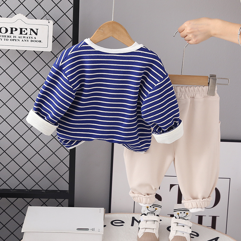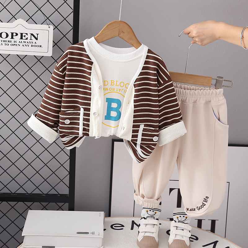 소년 세트 새로운 패션 잘 생긴 스트라이프 긴팔 재킷 셔츠 바지 3 피스 아기 가을 가디건