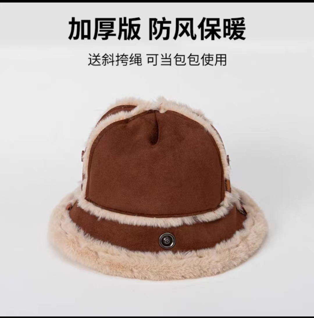 양면 웨어러블 두꺼운 스웨이드 어부 모자 여성용 플러시 따뜻한 방한 크로스 오버 트렌디 백 캡스토어 가기