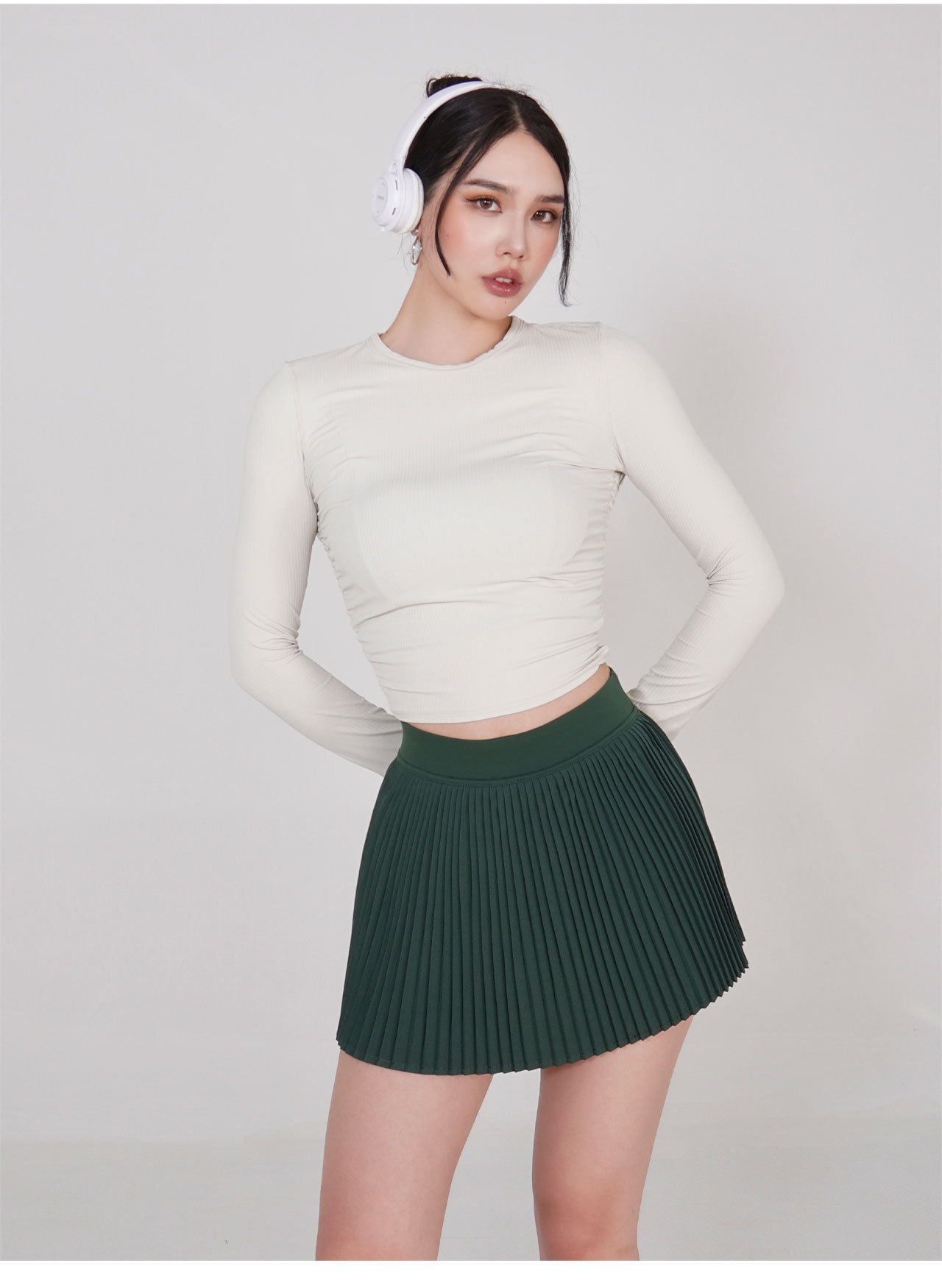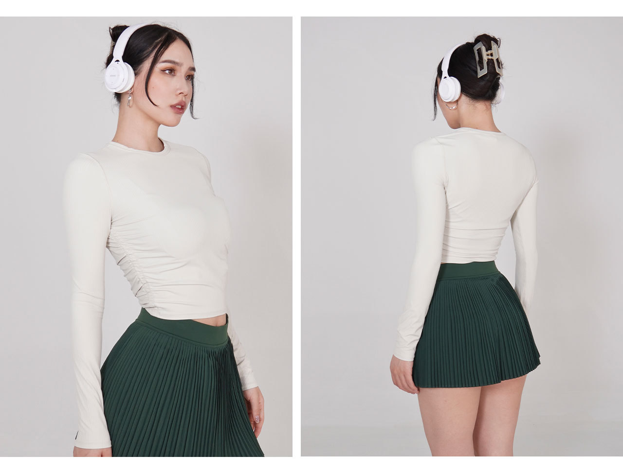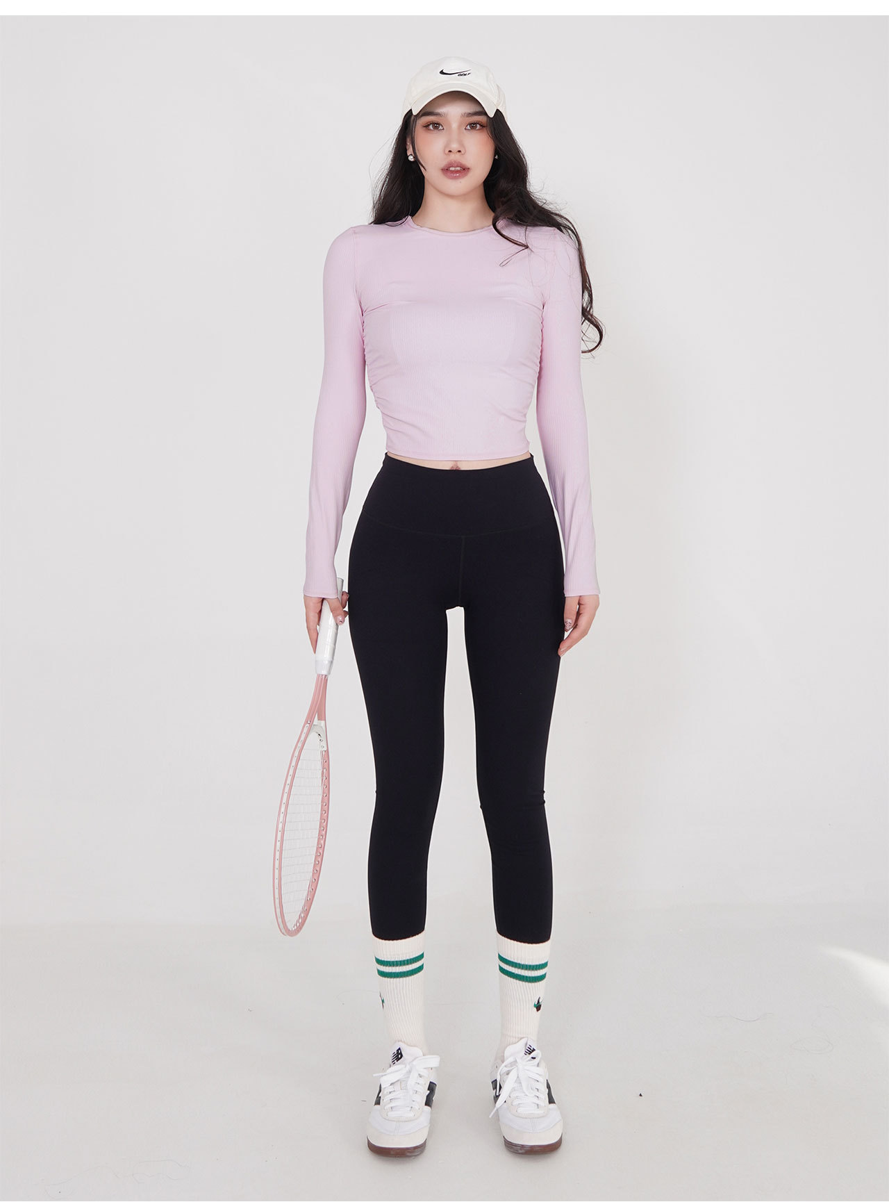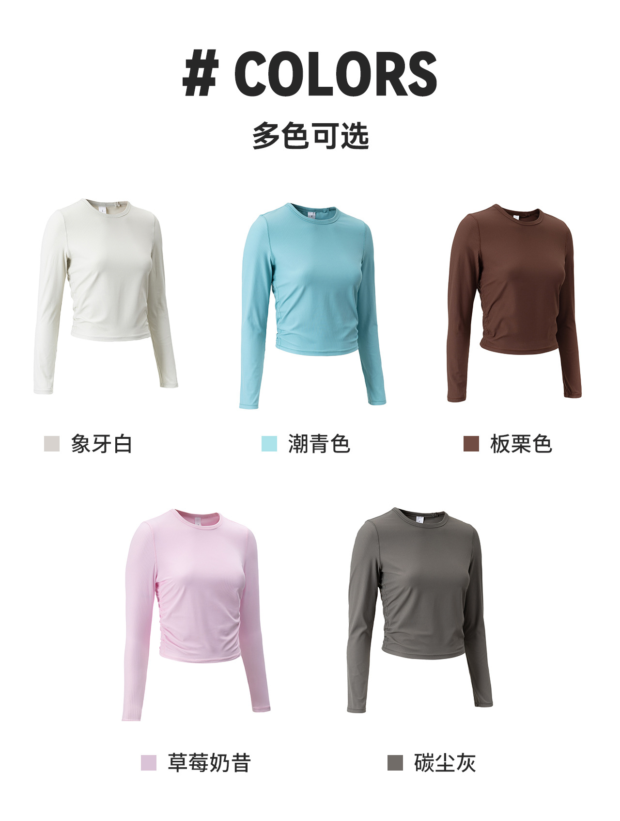 가을 겨울 새로운 스타일의 기모 누드 요가 긴팔 여성용 사이드 플리츠 짧은 티셔츠 슬리밍 요가 피트니스웨어