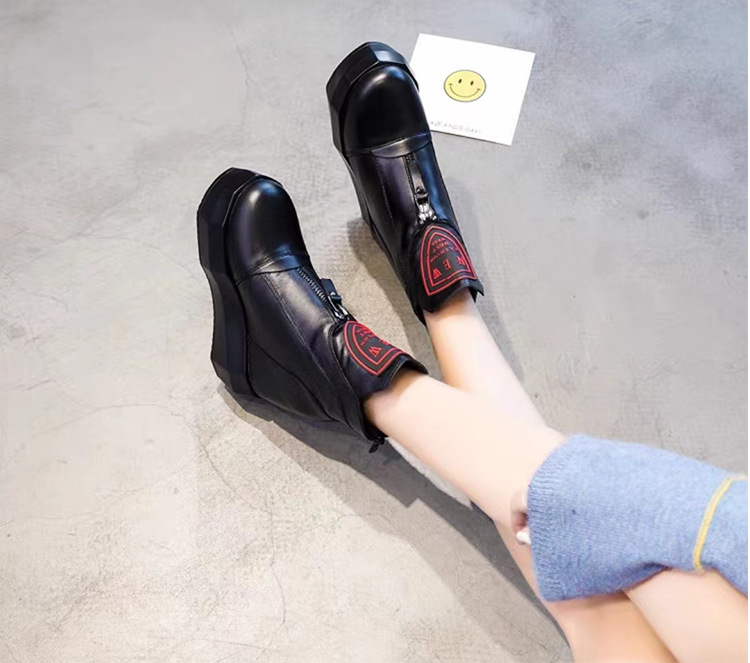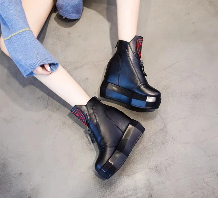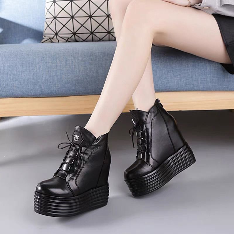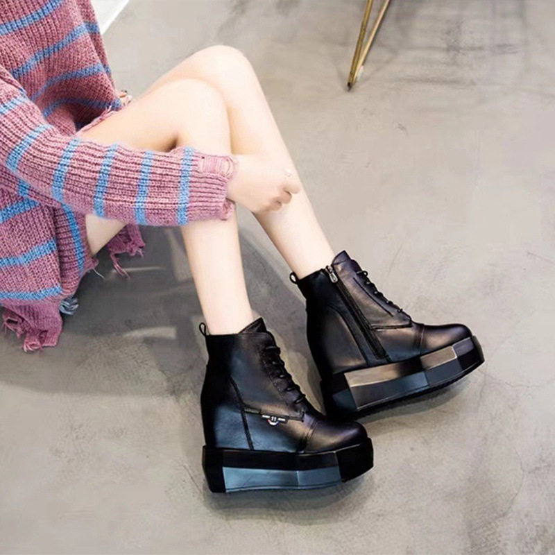 정품 가죽 내부 높이 증가 여성의 2023 새로운 두꺼운 바닥 작은 짧은 여성의 높은 플랫폼 신발 기모 마틴 부츠