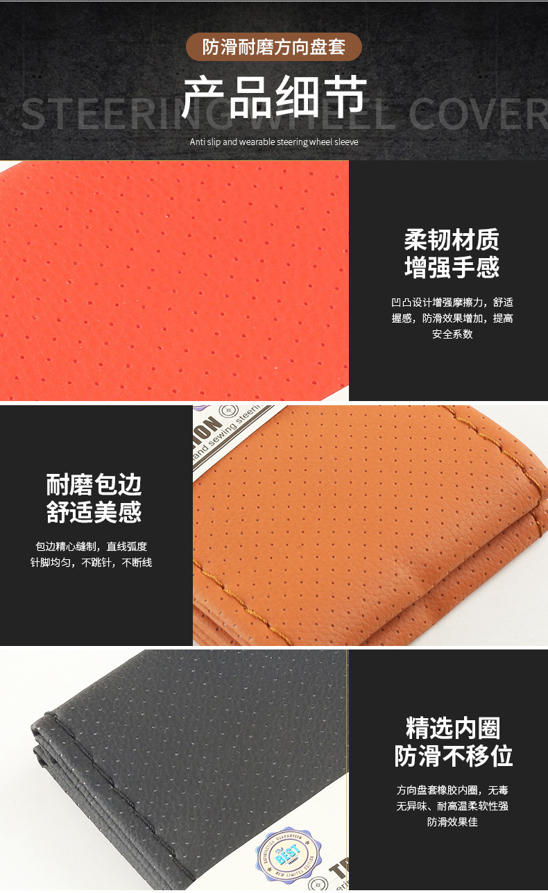 핸드 스티치 자동차 핸들 커버 제조업체 공급 울트라 화이버 가죽 핸들 커버 소프트 슬라이딩 안티 사계절 범용 핸드 스티치 핸들 커버스토어 가기