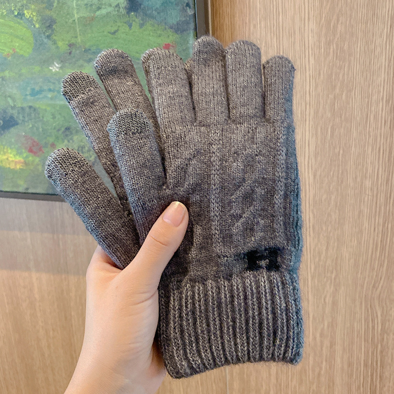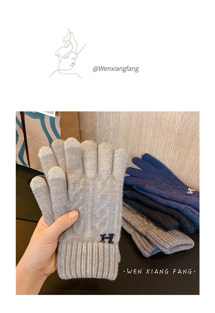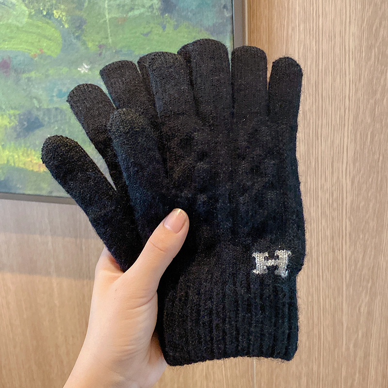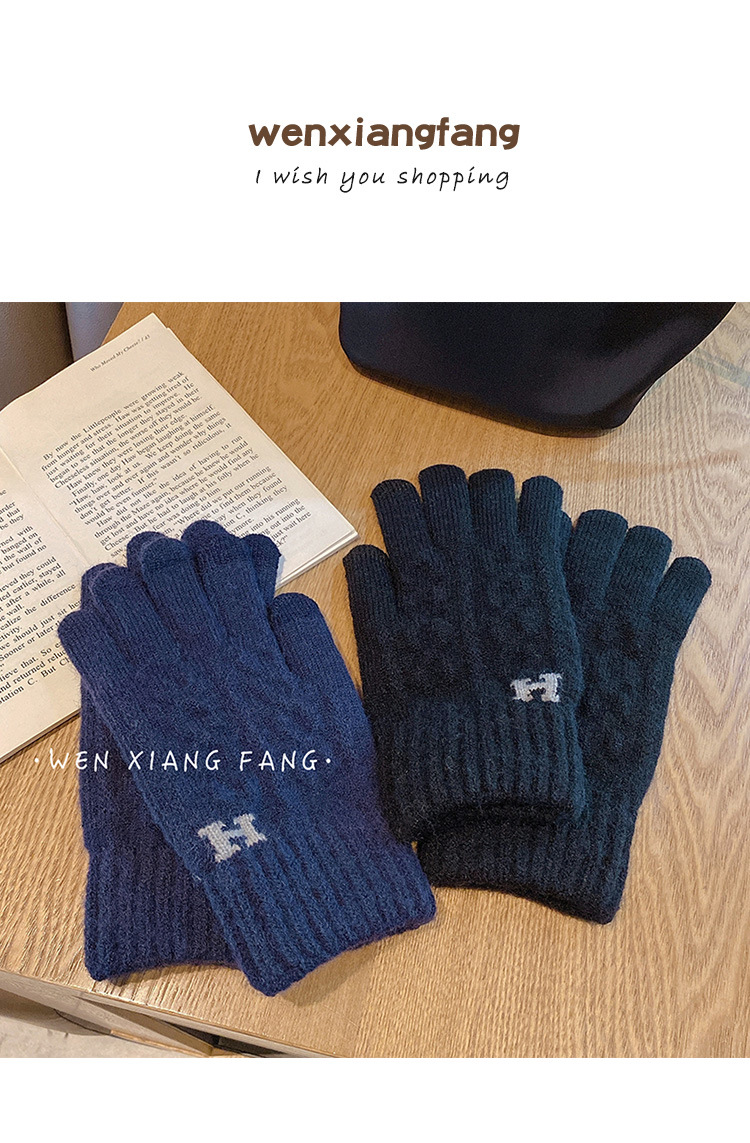 한국 남자의 편지 다섯 손가락 니트 터치 스크린 장갑 겨울 커플 사이클링 기모 학생 두꺼운 따뜻한 귀여운