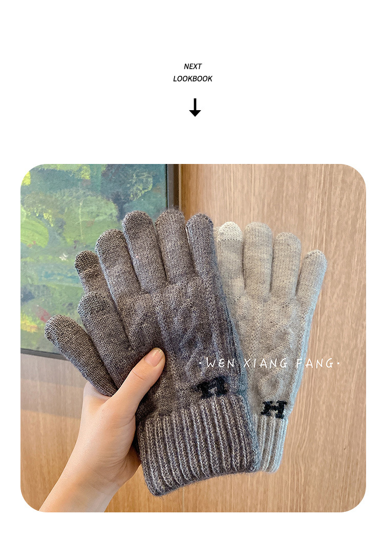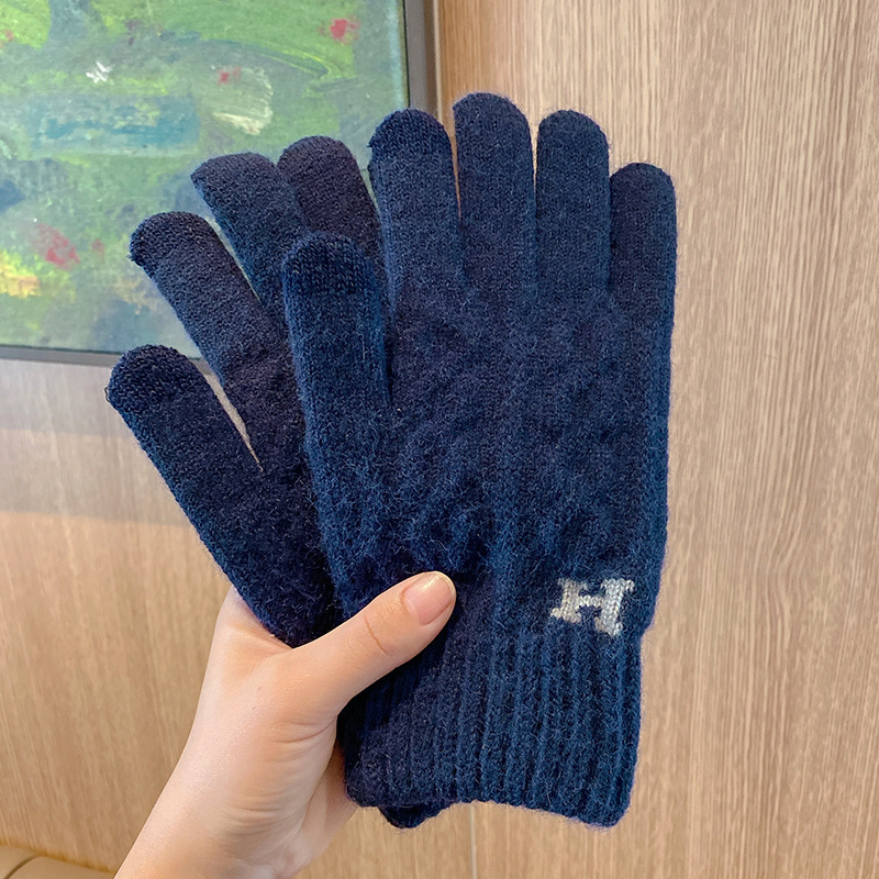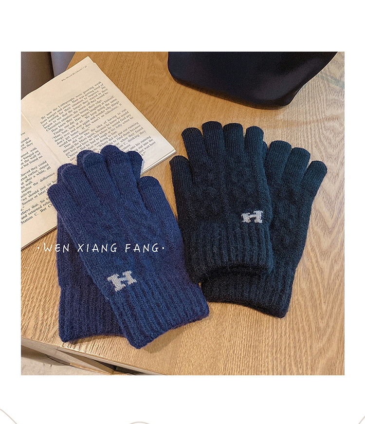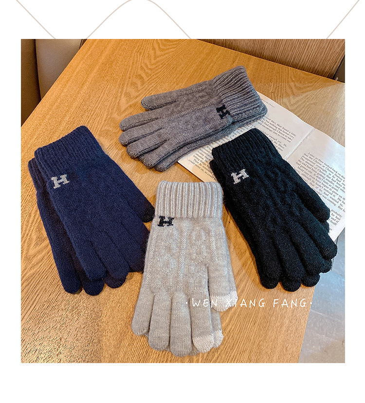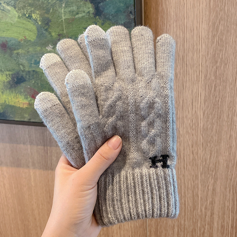 한국 남자의 편지 다섯 손가락 니트 터치 스크린 장갑 겨울 커플 사이클링 기모 학생 두꺼운 따뜻한 귀여운