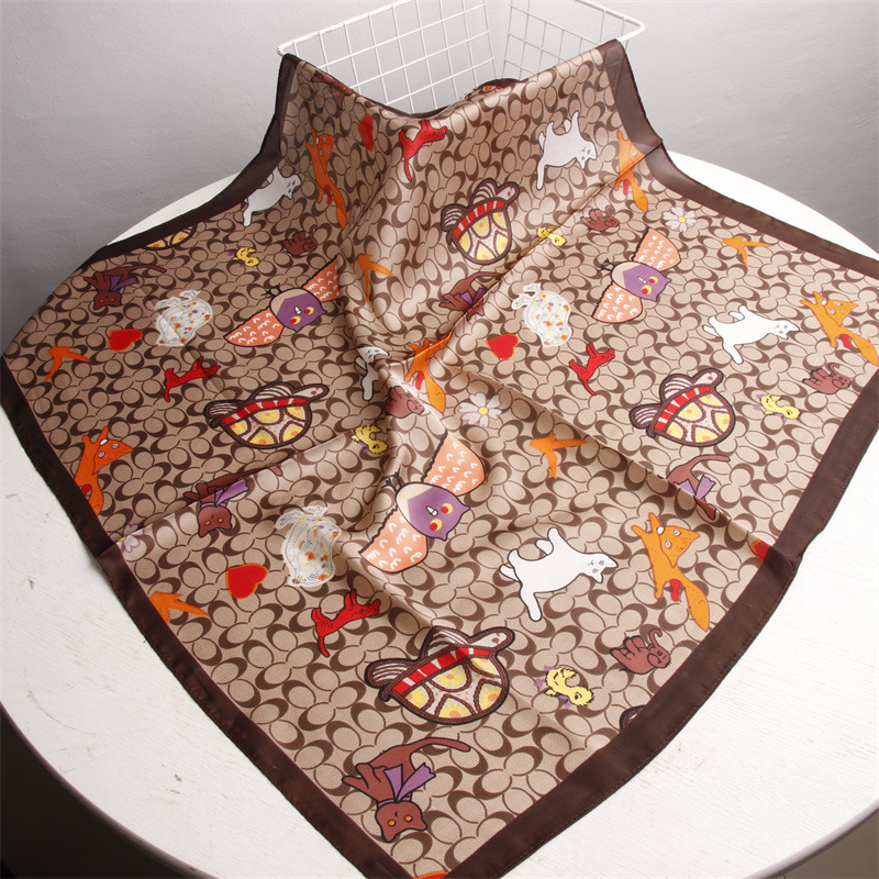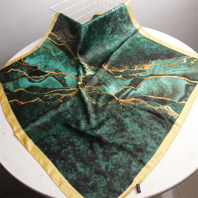70 실크 스카프 모조 실크 그린 작은 사각형 스카프 2023 새로운 간단한 인쇄 장식 얇은 스카프 여성용 넥타이 가방 스카프스토어 가기