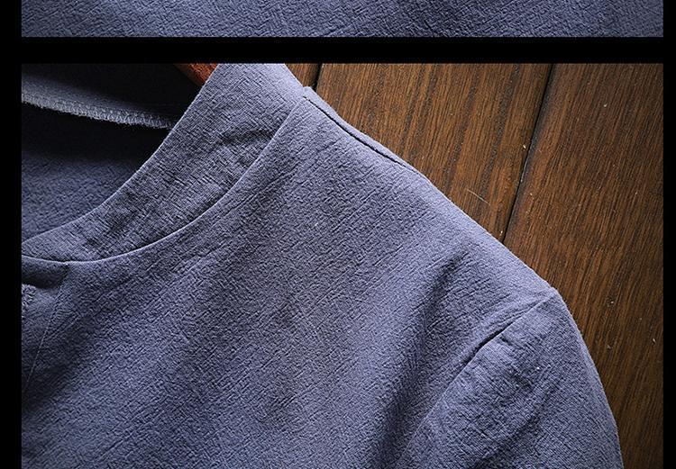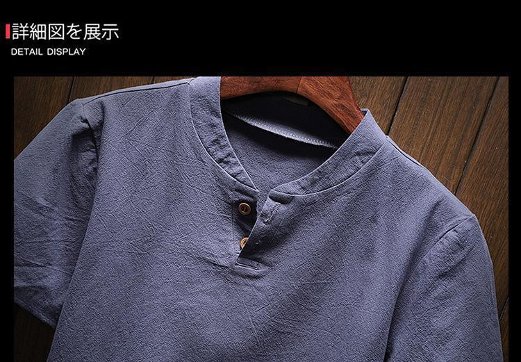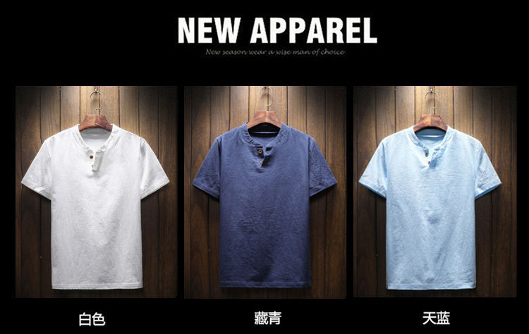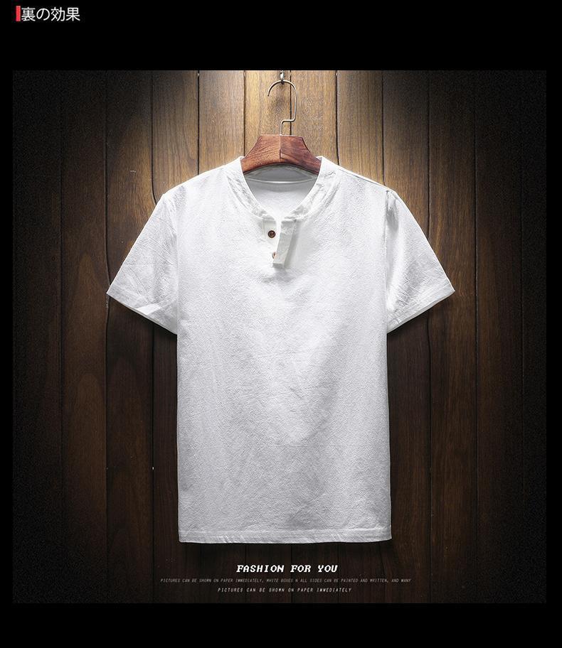 여름 린넨 스타일 반팔 티셔츠 남성 캐주얼 루즈한 남성 중국 스타일 빈티지 면 및 린넨 스타일 V-넥 티셔츠 남성 패션스토어 가기