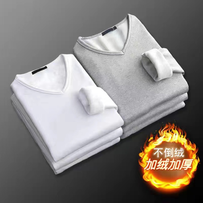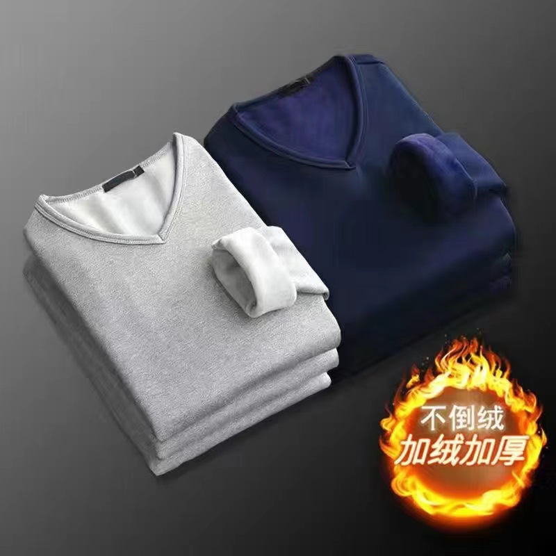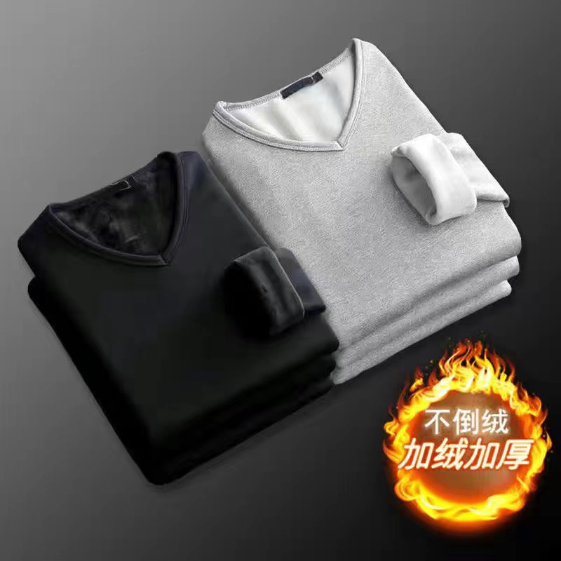 커플 홈 의류 속옷 기모 두꺼운 단색 따뜻한 크루넥 남성과 여성의 같은 스타일 겉옷을 입고 티셔츠 기본 셔츠스토어 가기