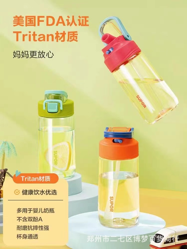 Supor 어린이 밀짚 컵 직접 마시는 BB컵 플라스틱 물 컵 학생 귀여운 여름 스포츠 손잡이가있는 가을 저항스토어 가기