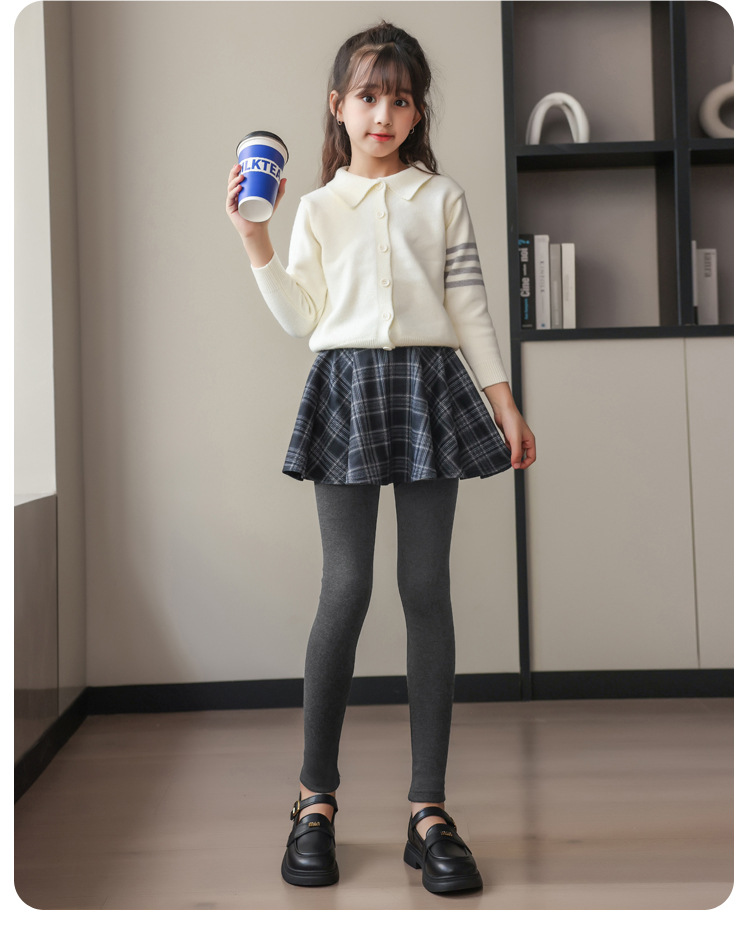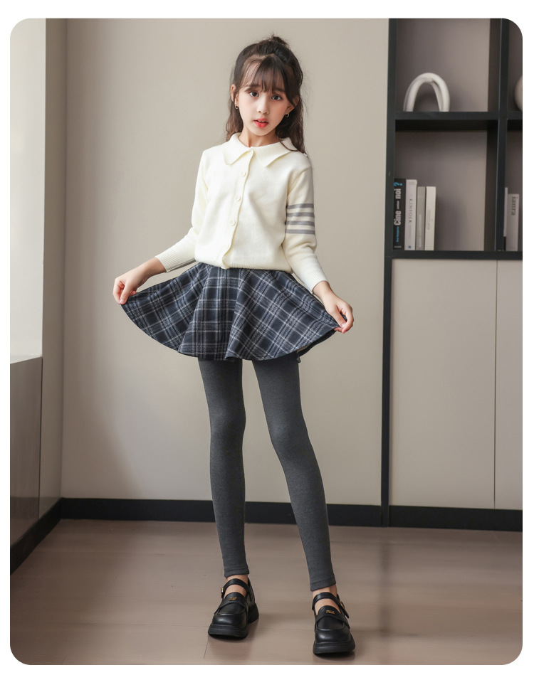 가을과 겨울 여아 격자 무늬 퀼로트 어린이 상어 바지 스커트 가짜 투피스 중형 및 대형 어린이 베이스 스커트 슬림핏 레깅스 스커트