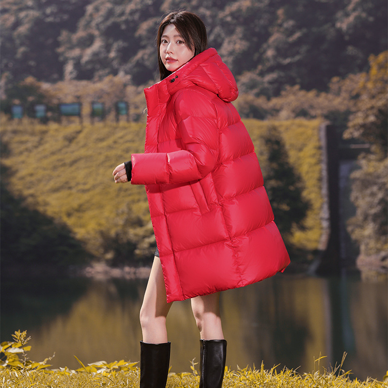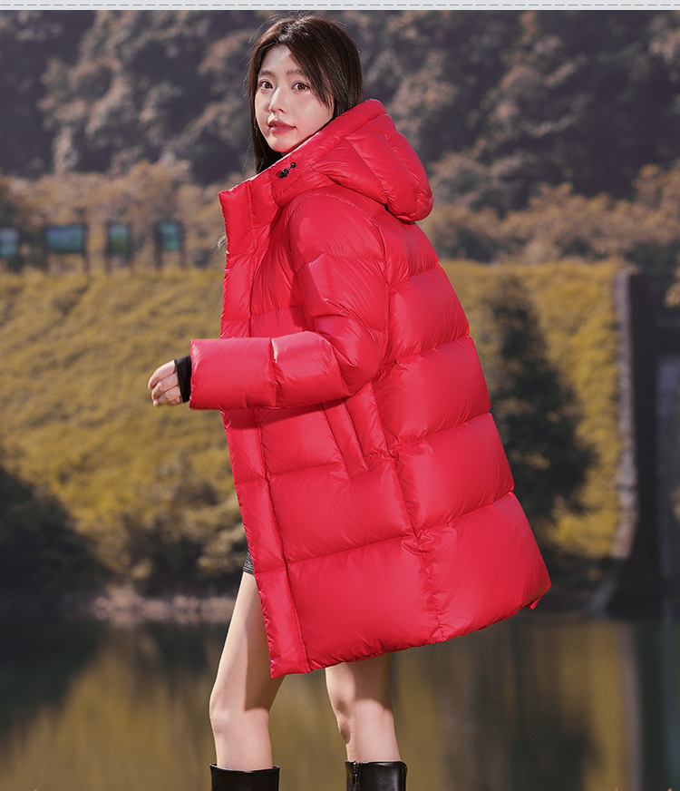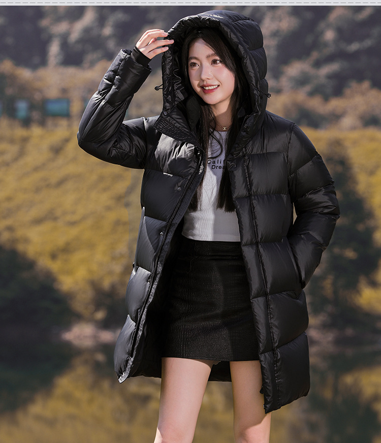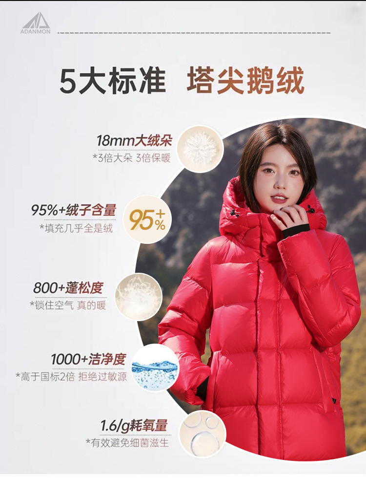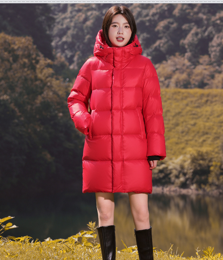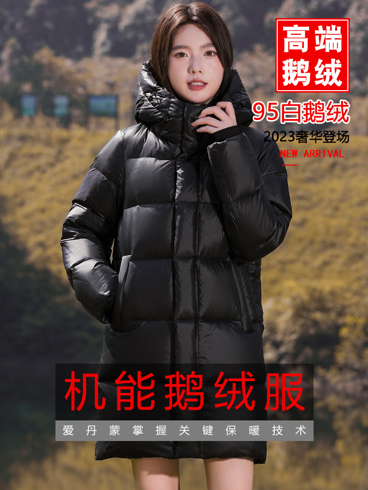 아이단몬 안신 95 화이트 구스다운 여성용 중간 길이 다운 재킷 2025 신상품 초두꺼운 후드 겨울 여성용 코트스토어 가기