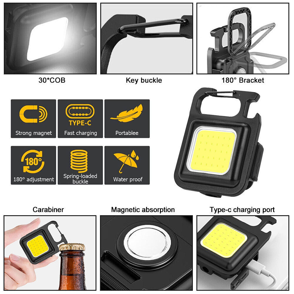 폭발성 미니 키 체인 램프 다기능 휴대용 휴대용 램프 led 손전등 야외 강한 자기 작업 램프 키 램프
