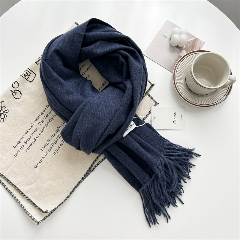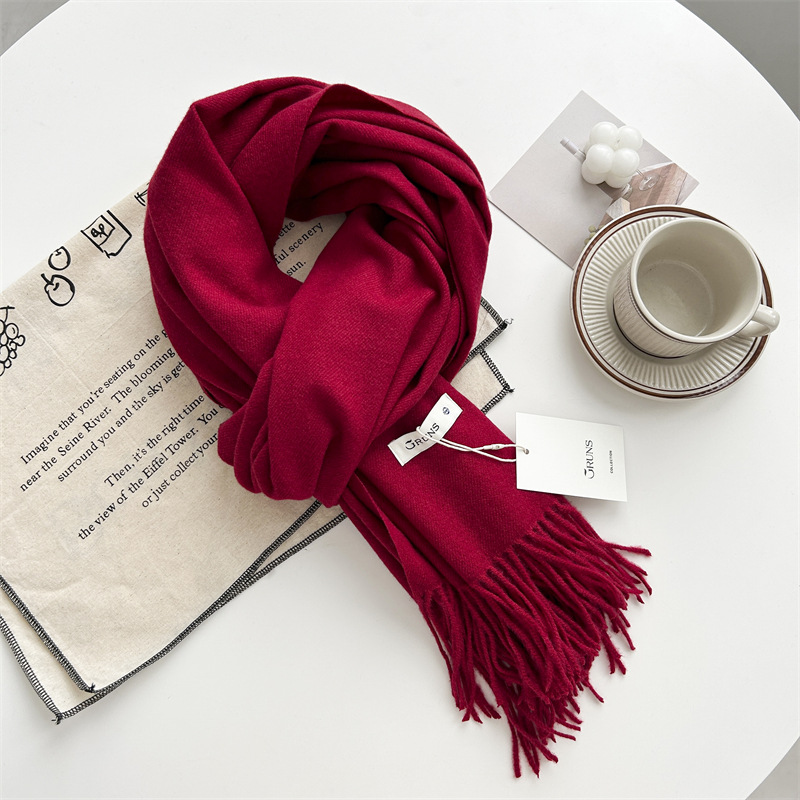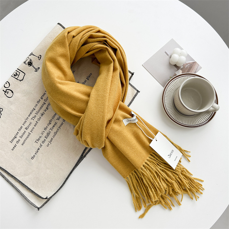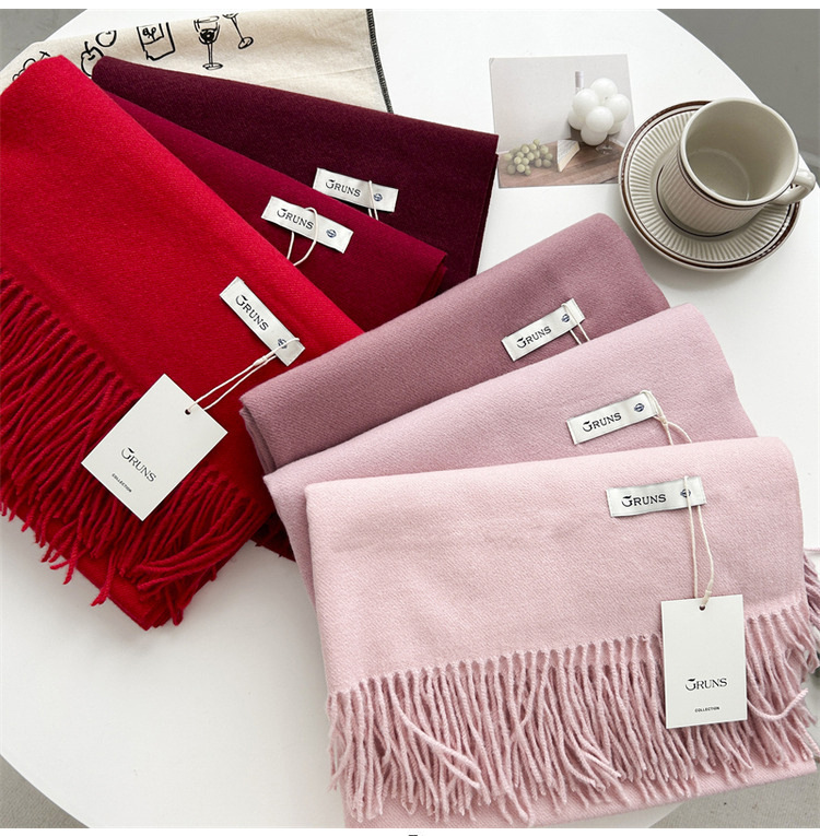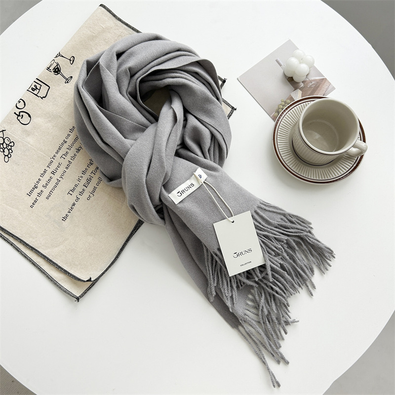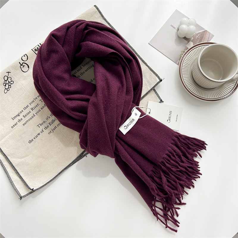 캐시미어 느낌 가을과 겨울 단색 스카프 여성용 두꺼운 한국식 술 심플 모든 매치 소프트 왁스 따뜻한 모조 캐시미어 숄