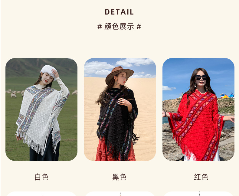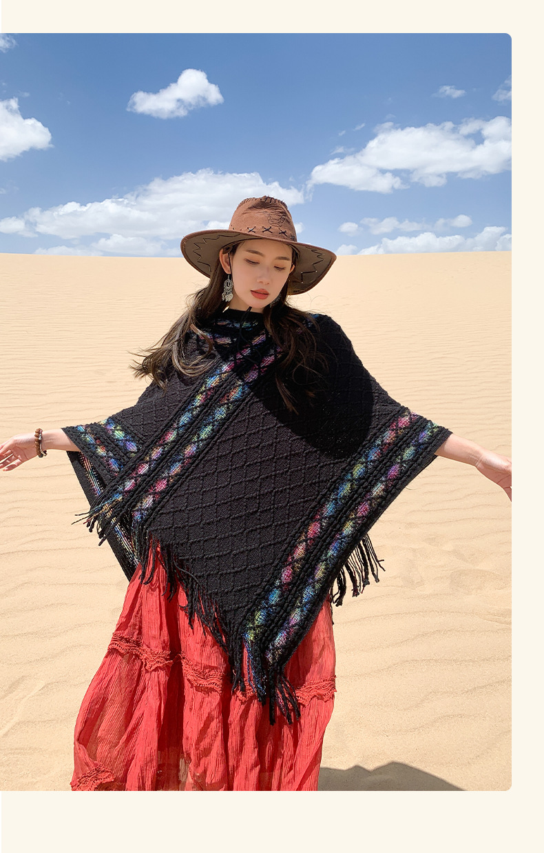 가을과 겨울 새로운 민족 스타일 풀오버 숄 여성용 니트 두꺼운 따뜻한 숄 티베트 여행 술 케이프 외부