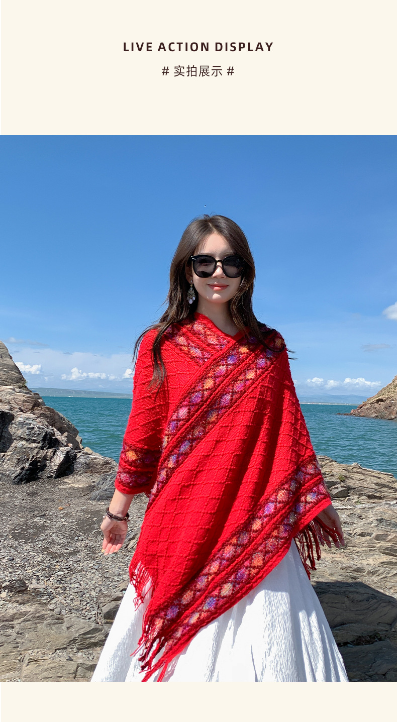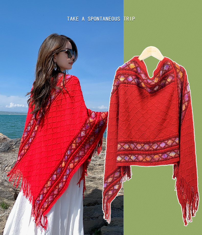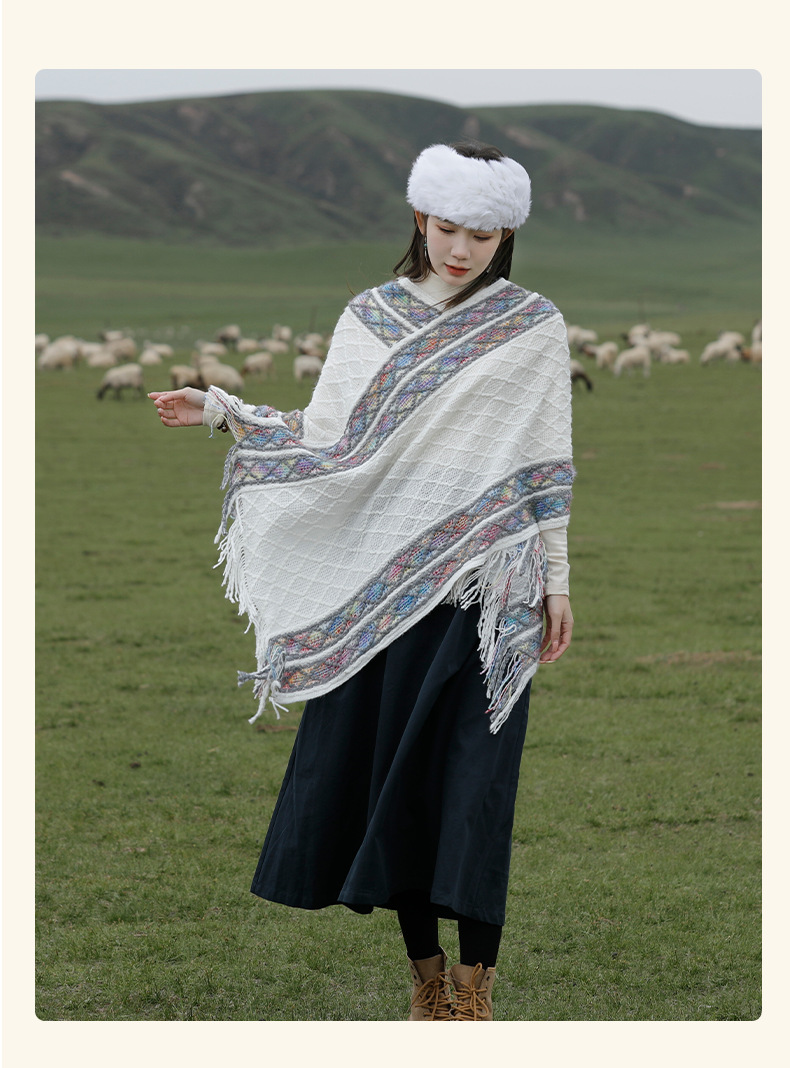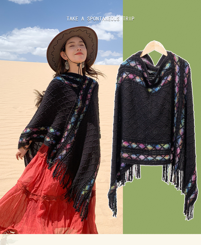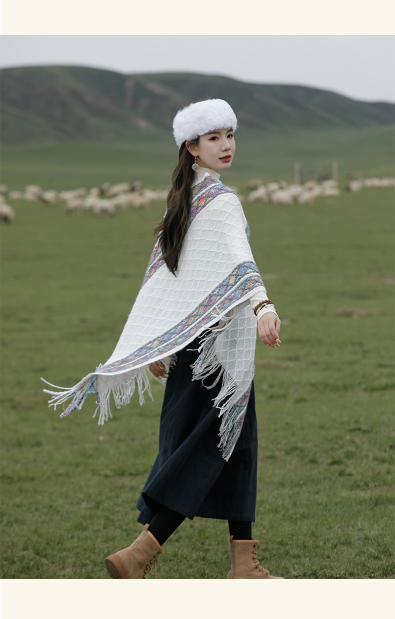 가을과 겨울 새로운 민족 스타일 풀오버 숄 여성용 니트 두꺼운 따뜻한 숄 티베트 여행 술 케이프 외부스토어 가기
