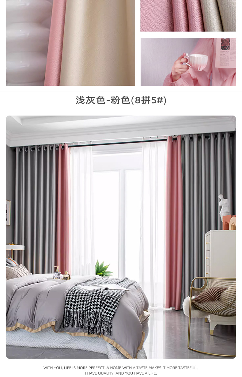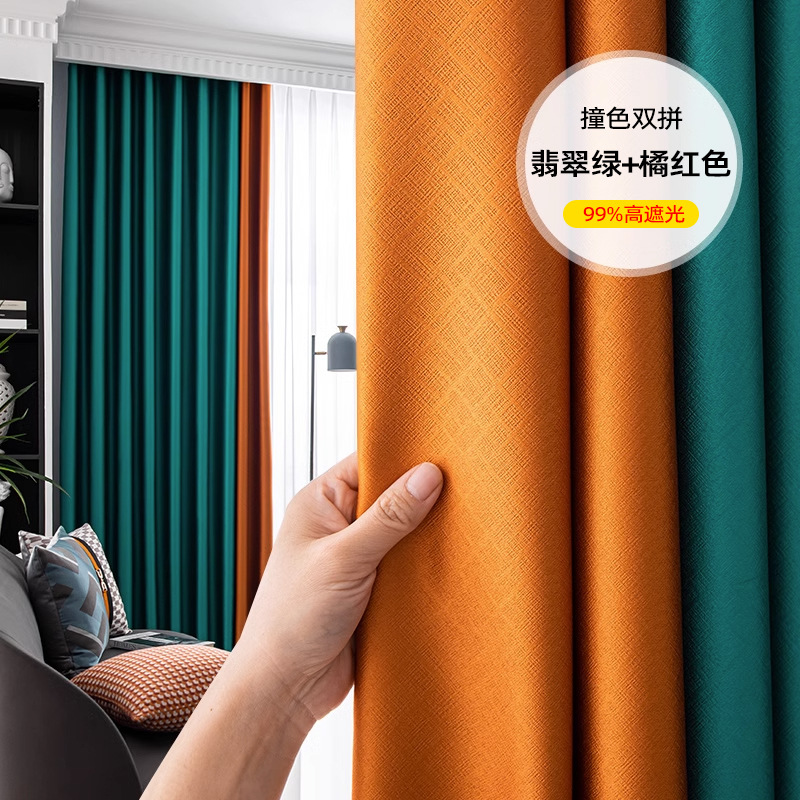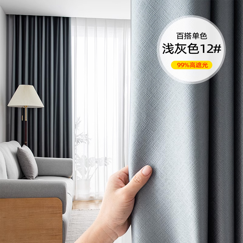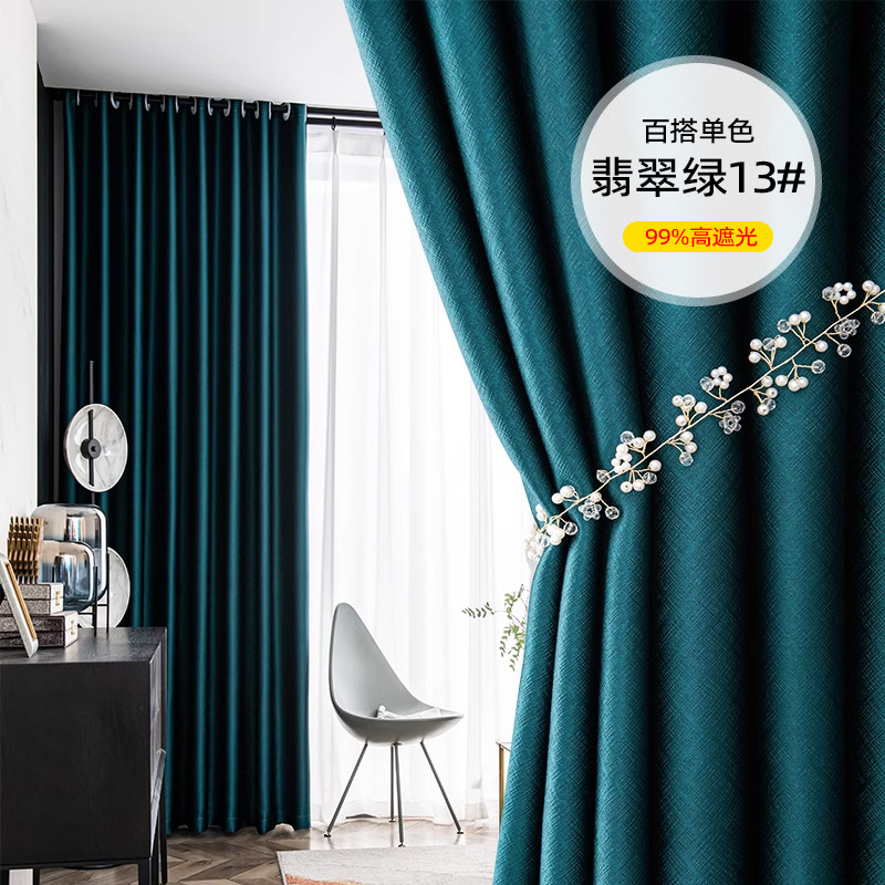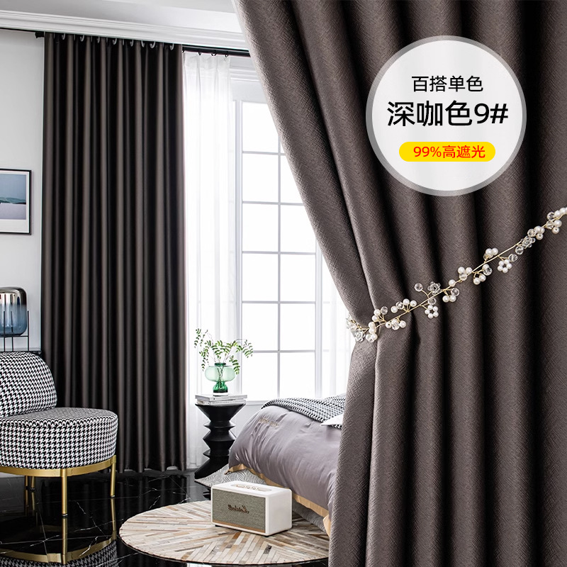 풀 블랙 아웃 커튼 두껍게 완성 된 블랙 실크 새로운 방음 소음 감소 빛 럭셔리 단색 스티칭 거실 침실 임대 주택