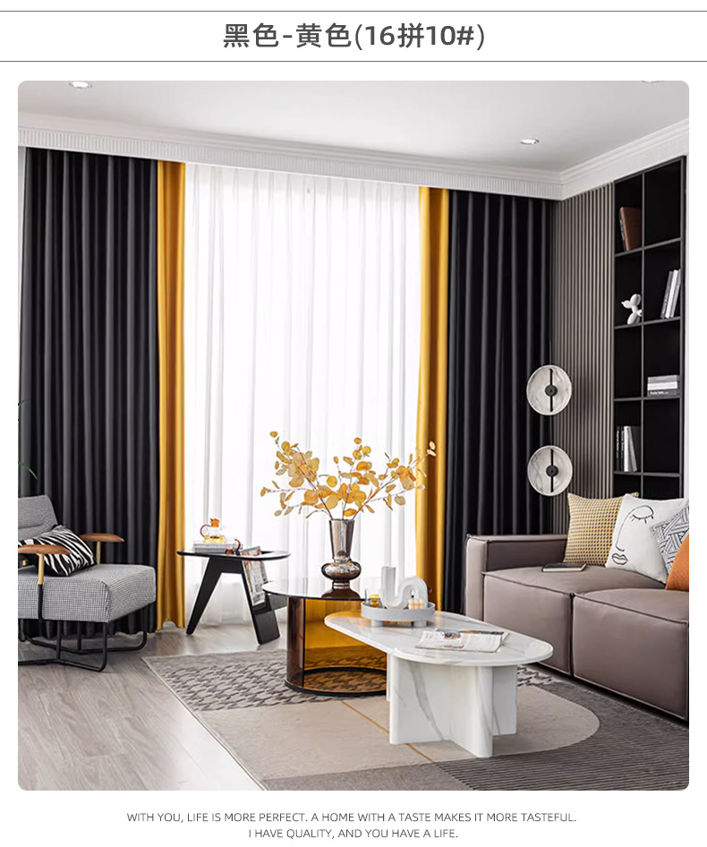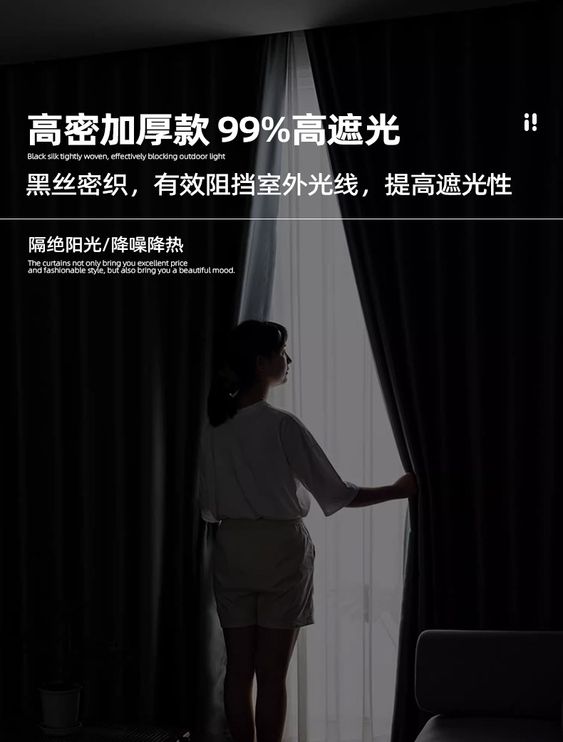 풀 블랙 아웃 커튼 두껍게 완성 된 블랙 실크 새로운 방음 소음 감소 빛 럭셔리 단색 스티칭 거실 침실 임대 주택스토어 가기