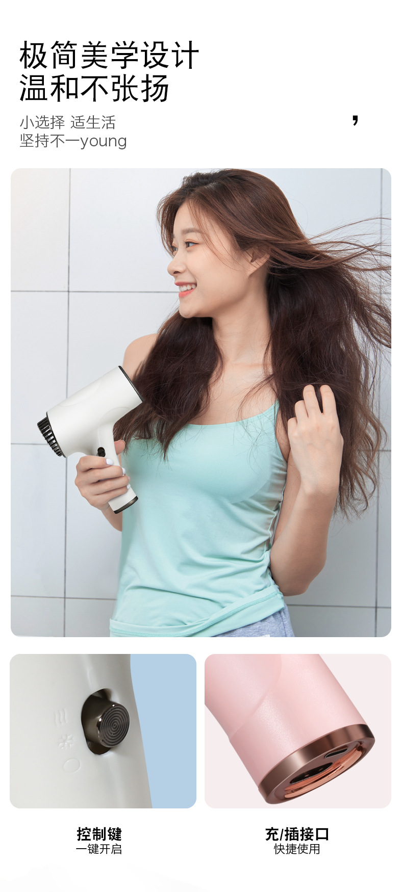 충전 무선 속건 헤어 드라이어 학생 기숙사 음이온 냉기 및 열풍 헤어 케어 조용한 휴대용 헤어 드라이어스토어 가기