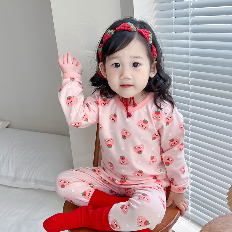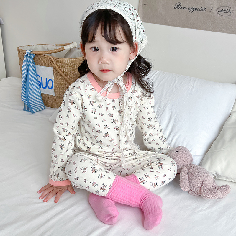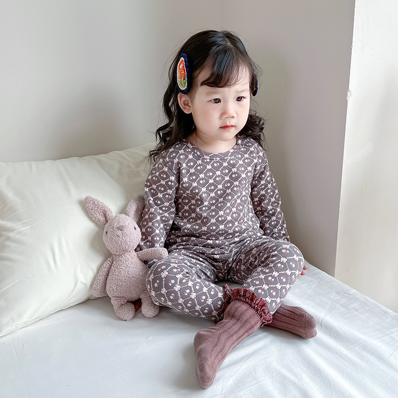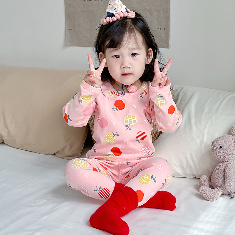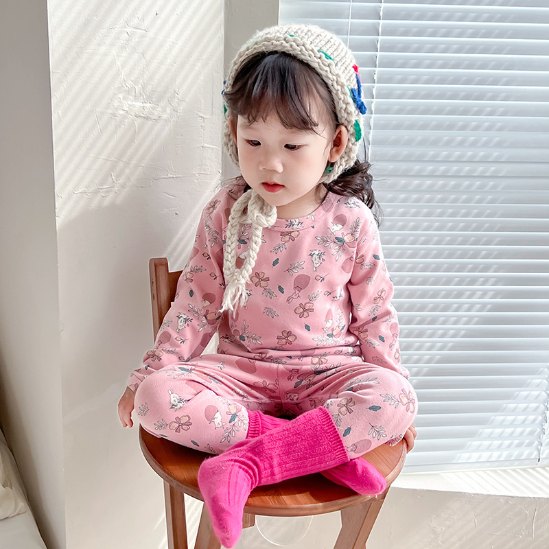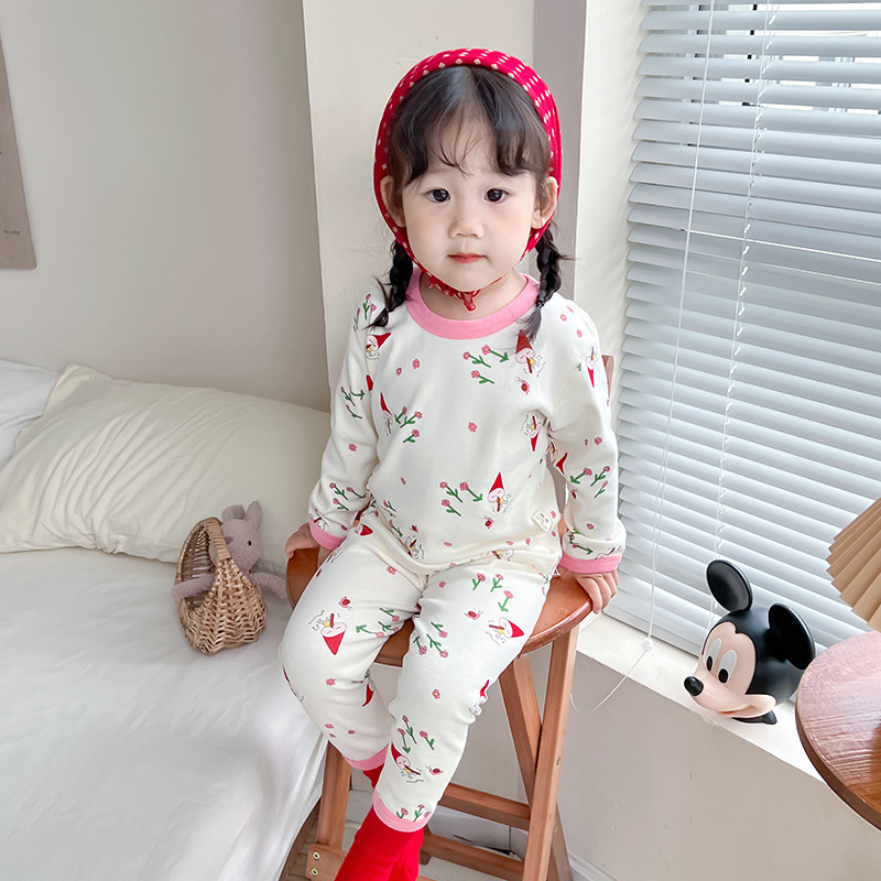 2023 가을과 겨울 새로운 어린이 속옷 세트 뼈없는 꽃 양모 풀 랙 두꺼운 아기 따뜻한 가을 옷 바지스토어 가기