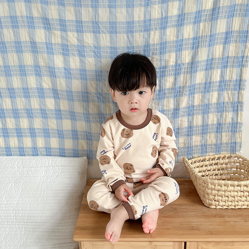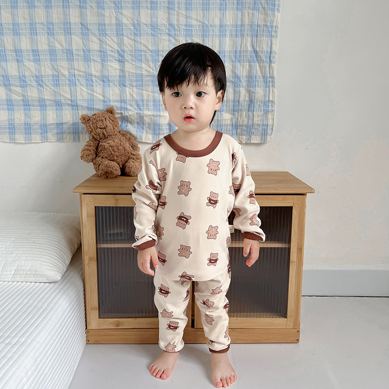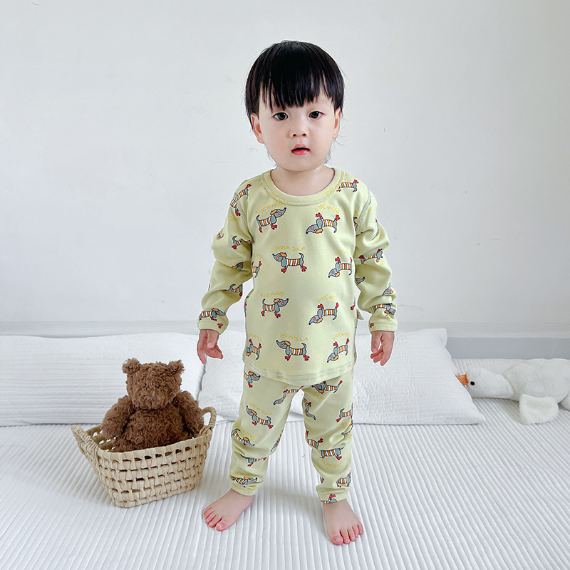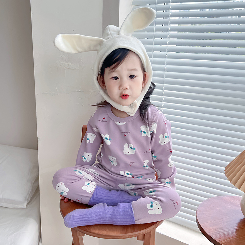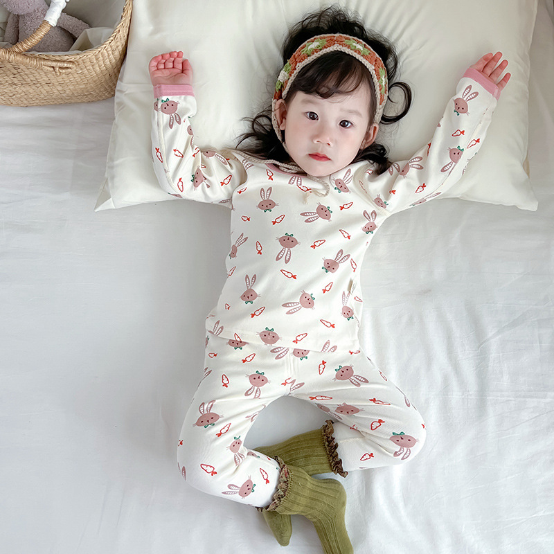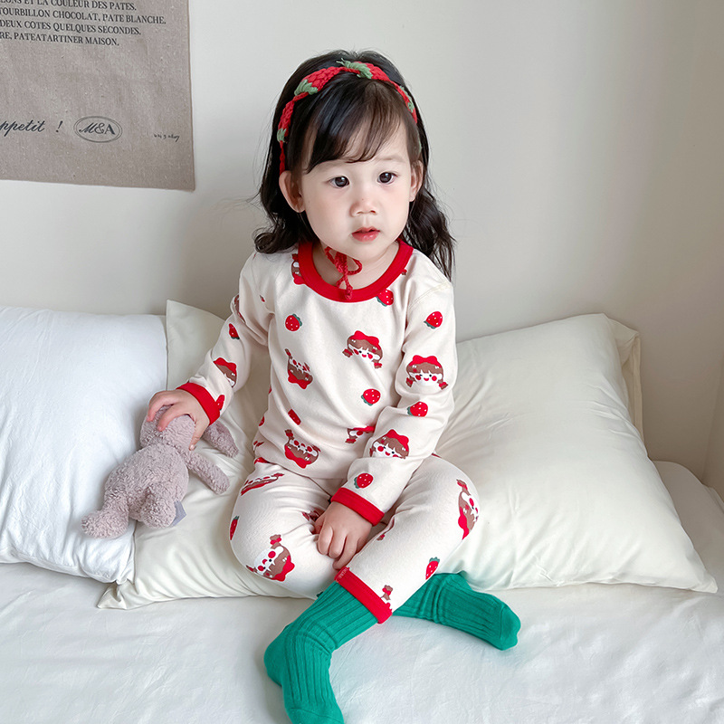 2023 가을과 겨울 새로운 어린이 속옷 세트 뼈없는 꽃 양모 풀 랙 두꺼운 아기 따뜻한 가을 옷 바지스토어 가기
