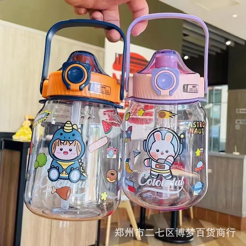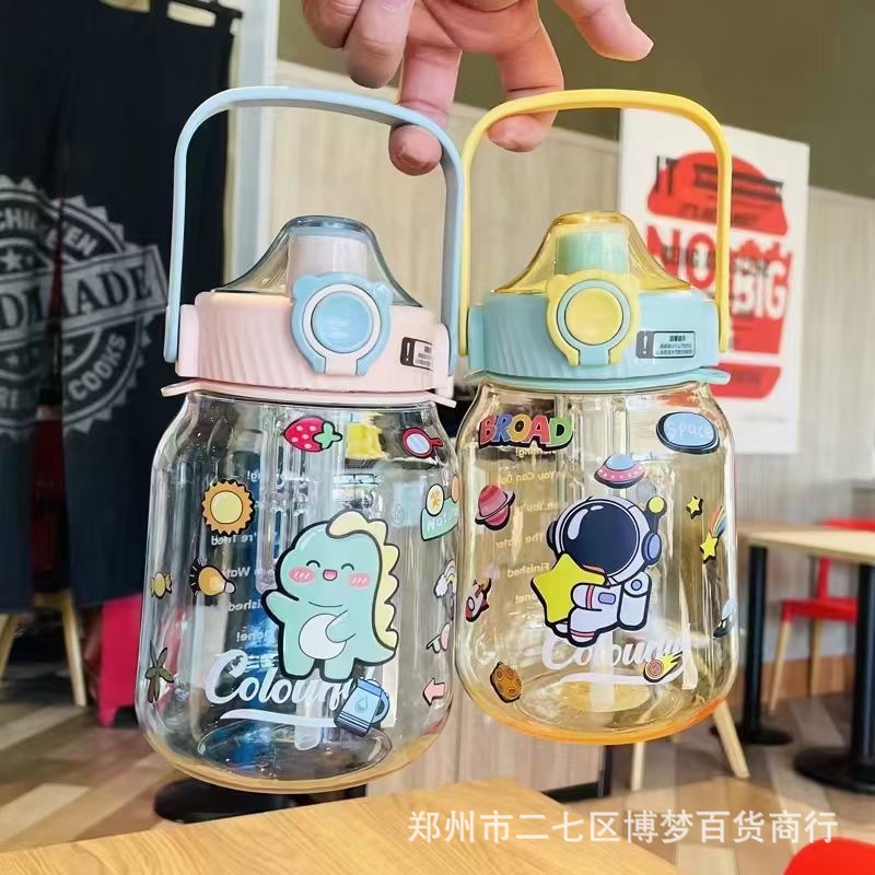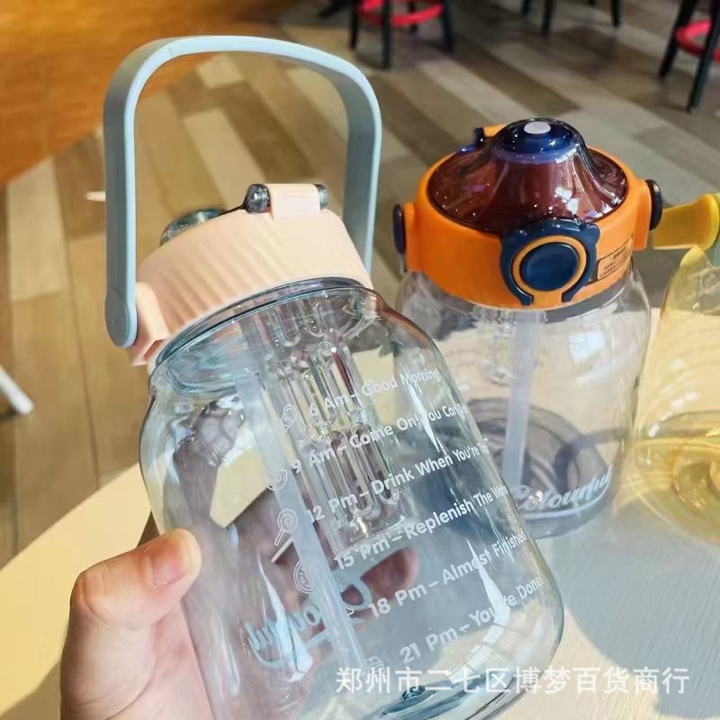 여름 인터넷-유명한 큰 배꼽 컵 고가 플라스틱 물컵 흡입 튜브 컵 대용량 휴대용 학생 스포츠 주전자스토어 가기