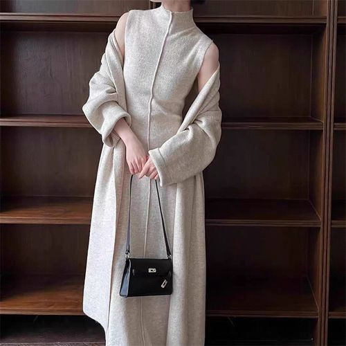디자인된 브이넥 부드럽고 피부 친화적인 니트 가디건 2025 가을 게으른 스타일 루즈한 무릎 길이 여성용 스웨터 재킷스토어 가기
