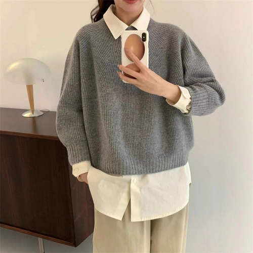 디자인된 브이넥 부드럽고 피부 친화적인 니트 가디건 2025 가을 게으른 스타일 루즈한 무릎 길이 여성용 스웨터 재킷