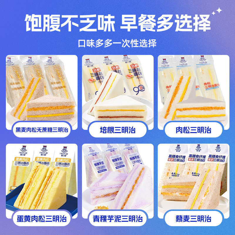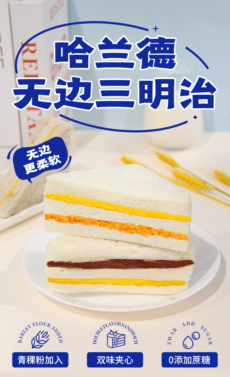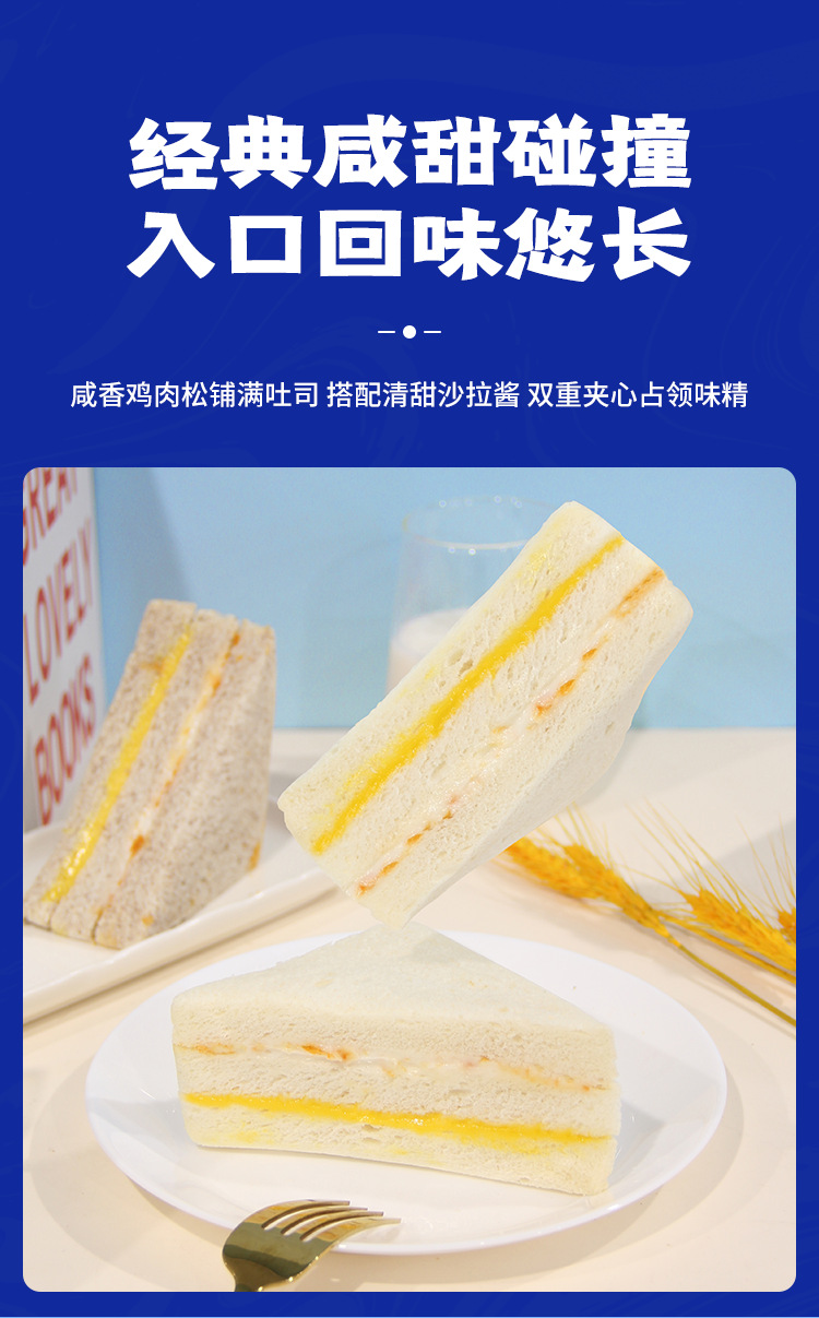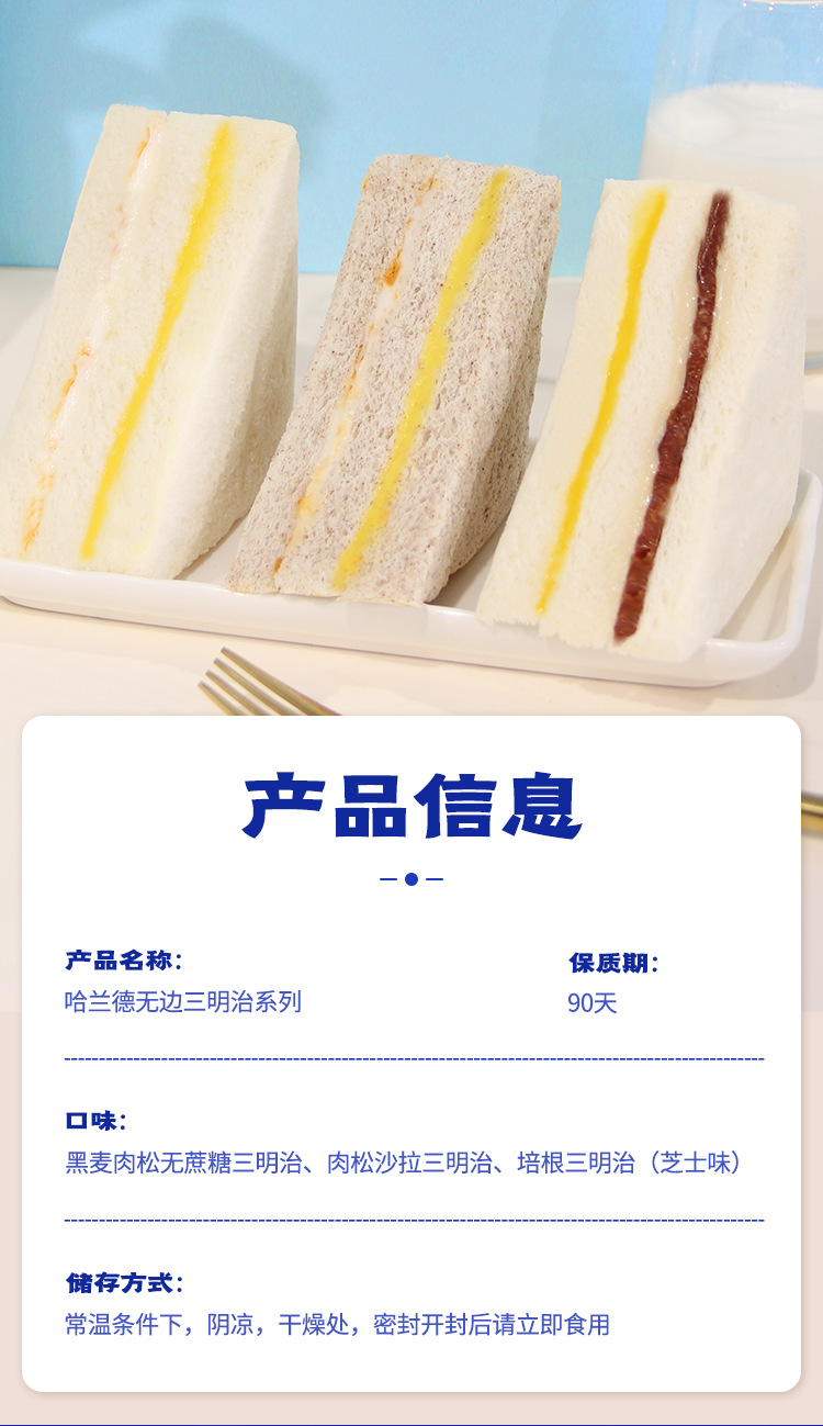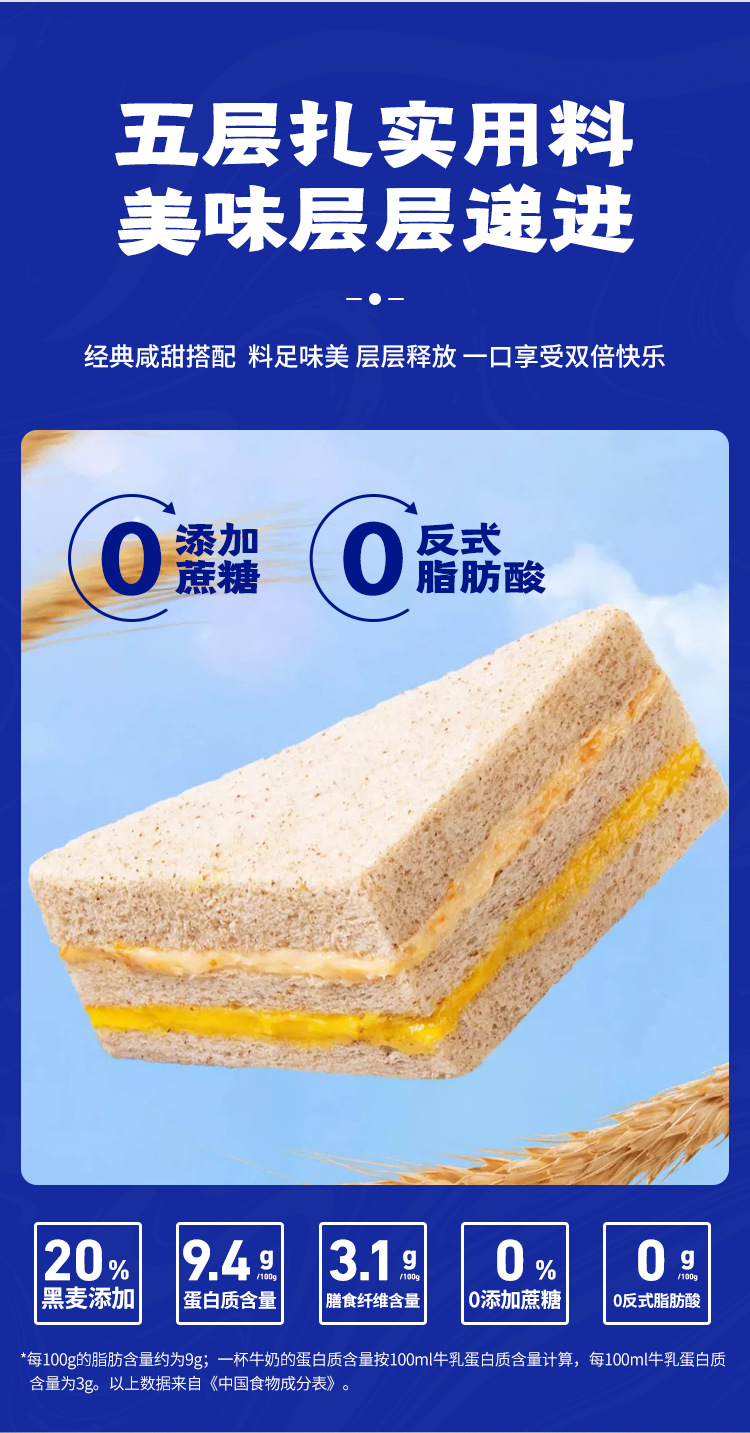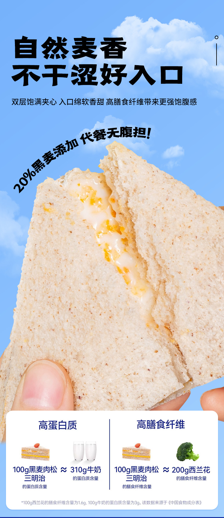 신상품 하란드 호밀 고기분말 샌드위치 바로 먹을 수 있는 베이컨 치즈빵 무설탕 스낵 서양식