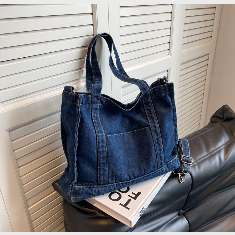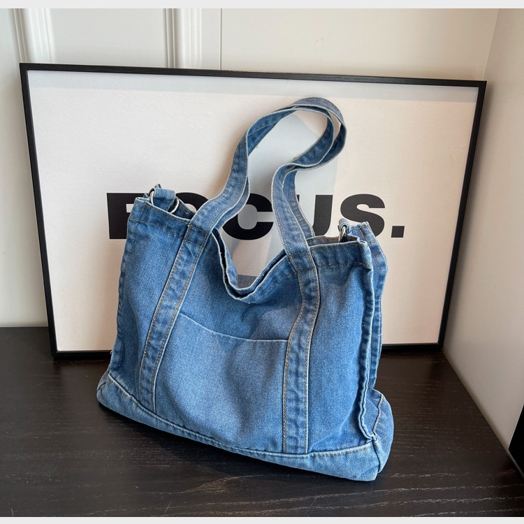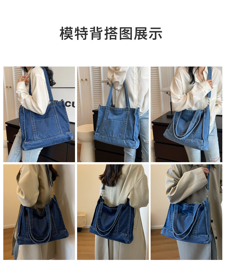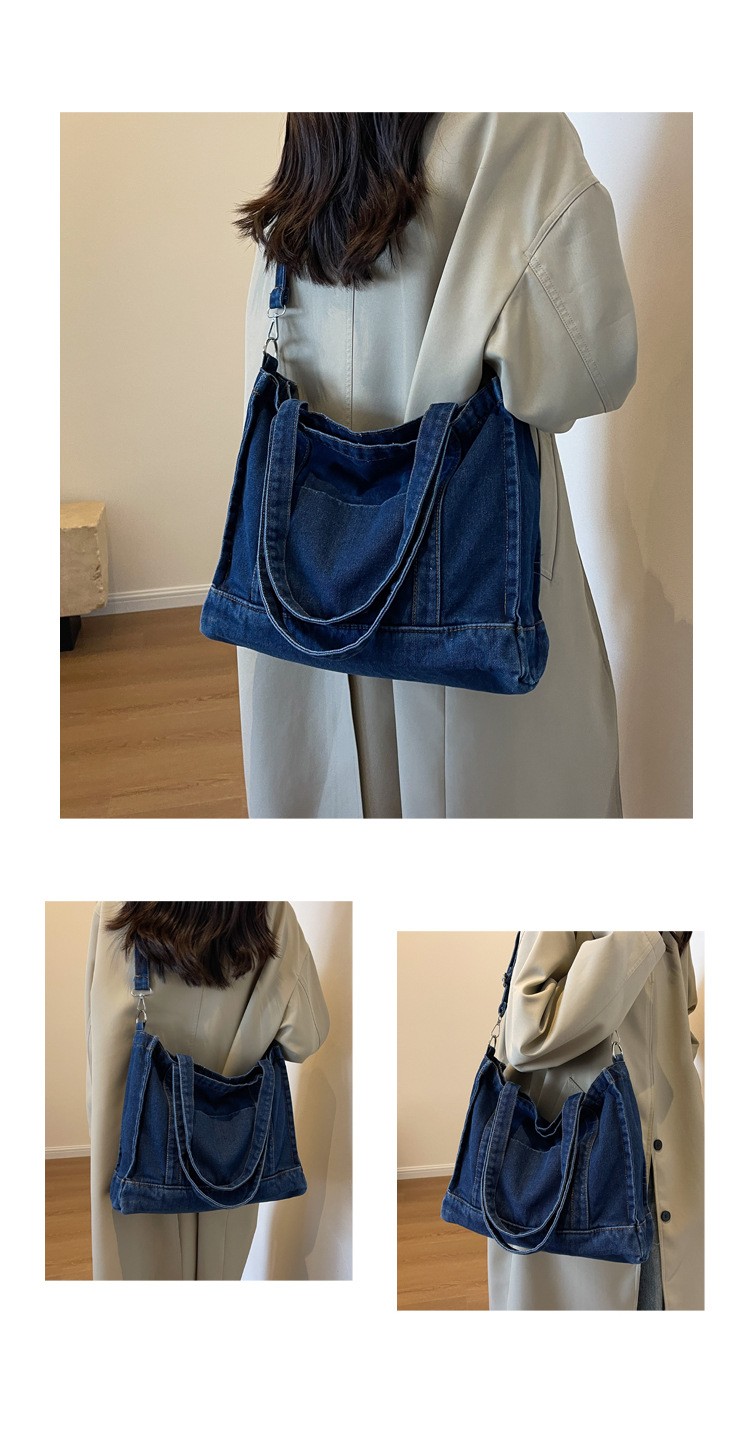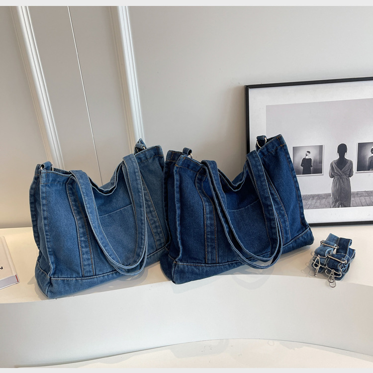 스트리트 트렌디 뉴 데님 토트백 여성의 유행 심플 모든 매치 숄더백 여행 캐주얼 크로스바디 백 크로스 보더스토어 가기
