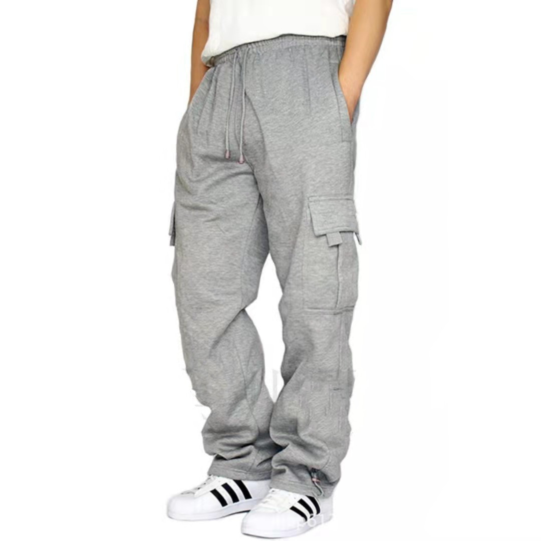 새로운 2023 크로스 보더 스포츠 캐주얼 바지 기모 발가락 멀티 포켓 테더 남성 느슨한 바지 바지