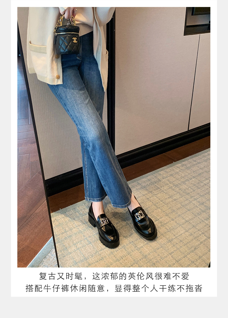 재고 있음 영국 대학 스타일 캐주얼 다재다능하고 패셔너블한 더블 C 금속 버클 라운드 투 두꺼운 밑창 두꺼운 굽 로퍼 작은 가죽 신발스토어 가기