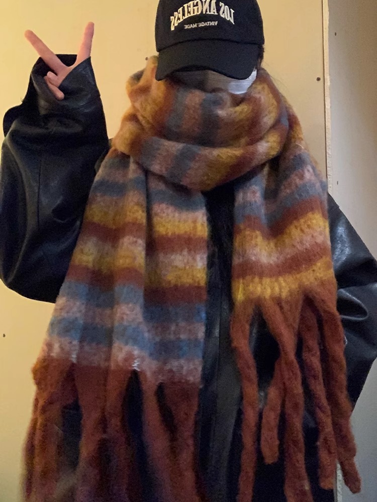 한국 빈티지 모헤어 스카프 여자의 겨울 따뜻한 방한 두꺼운 이중 목적 모피 모든 매치 스카프스토어 가기