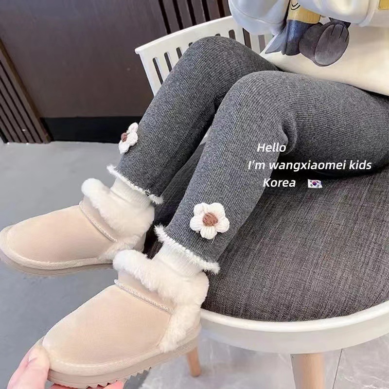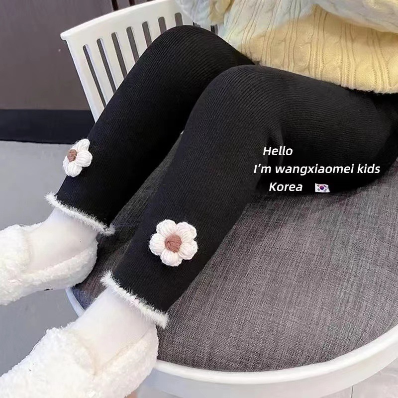 2023 새로운 가을과 겨울 소녀 기모 레깅스 얇은 벨벳 겉옷 아기 1 벨벳 서양 스타일 어린이 바지 모든 일치스토어 가기