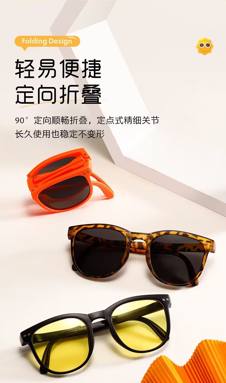 2025 새로운 어린이 맞춤형 접이식 선글라스 인터넷 기념 선글라스 야외 여행 휴대용 햇빛 UV 보호