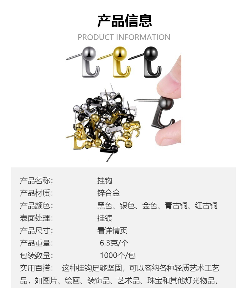 아연 합금 매달려 도금 후크 핀 벽 그림 네일 사진 프레임 유화 키 후크 눈썹 네일 보석 후크 버클