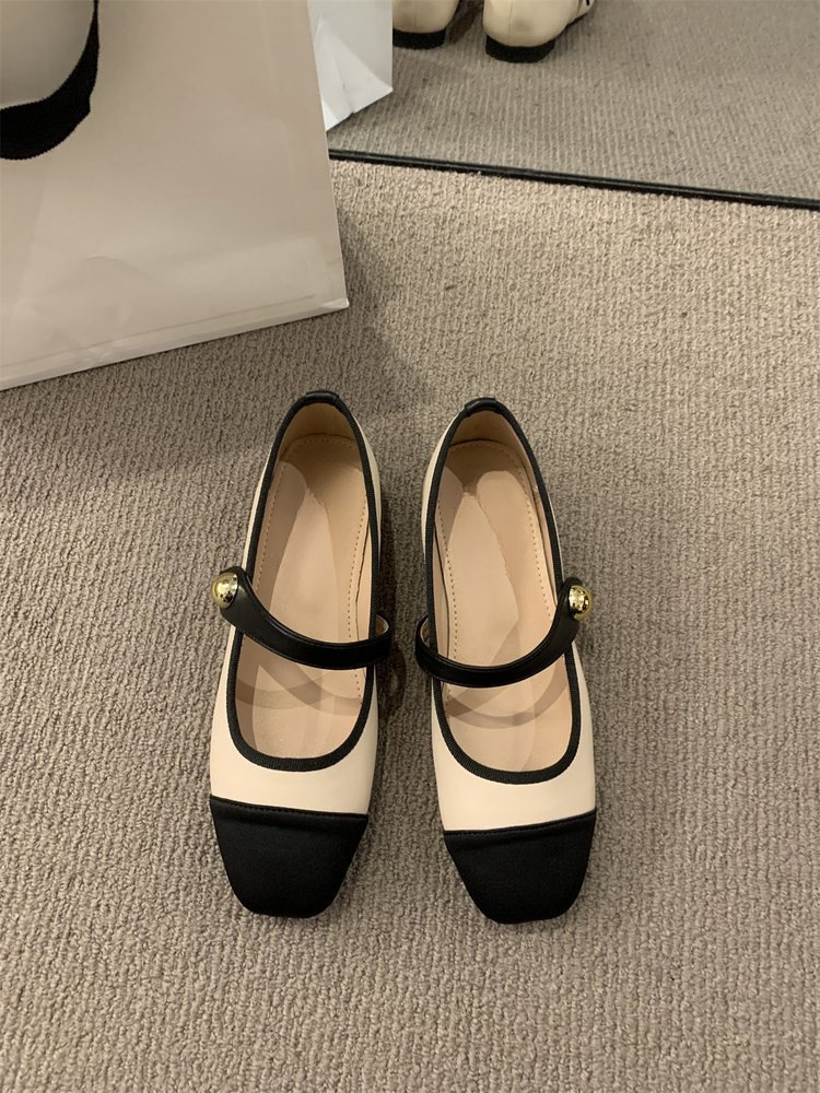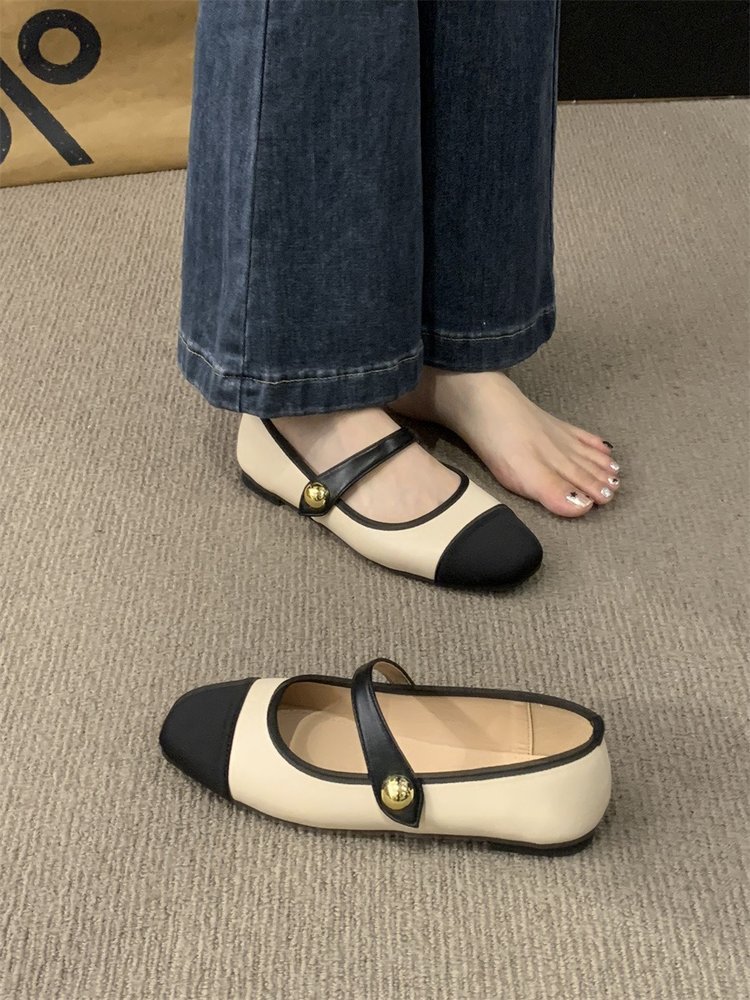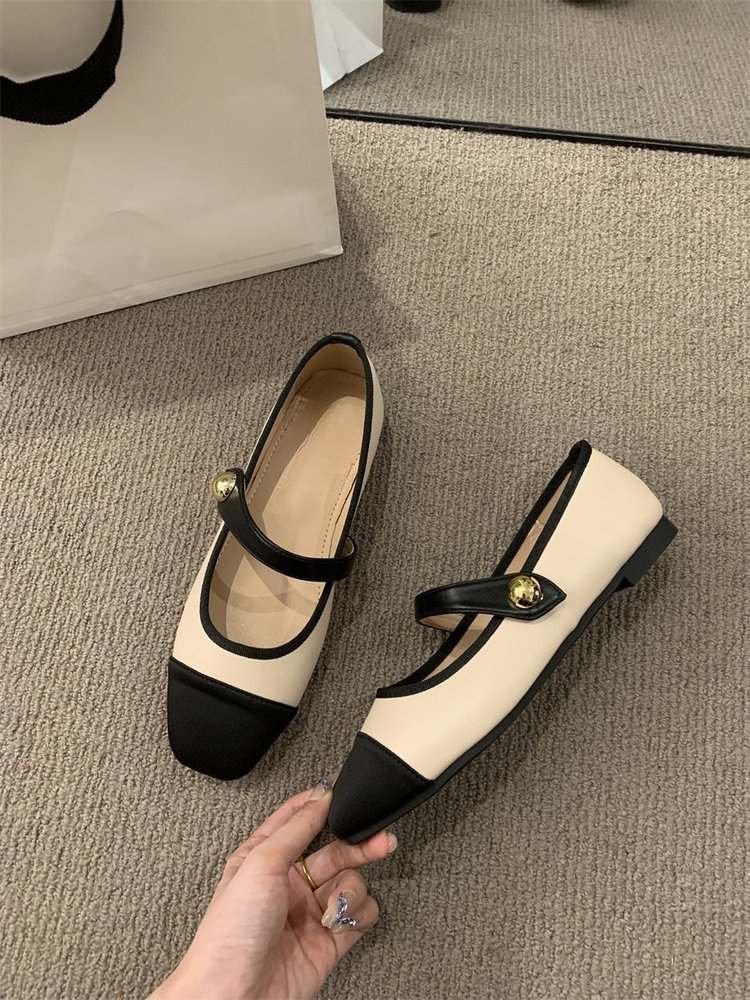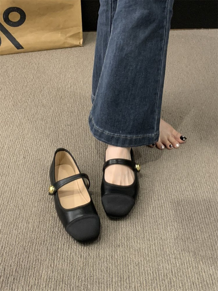 여성을위한 프랑스 저녁 바람 신발 스커트와 함께 2025 새로운 여름 블랙 메리 제인 신발 부드러운 가죽 얕은 입 발레 신발스토어 가기