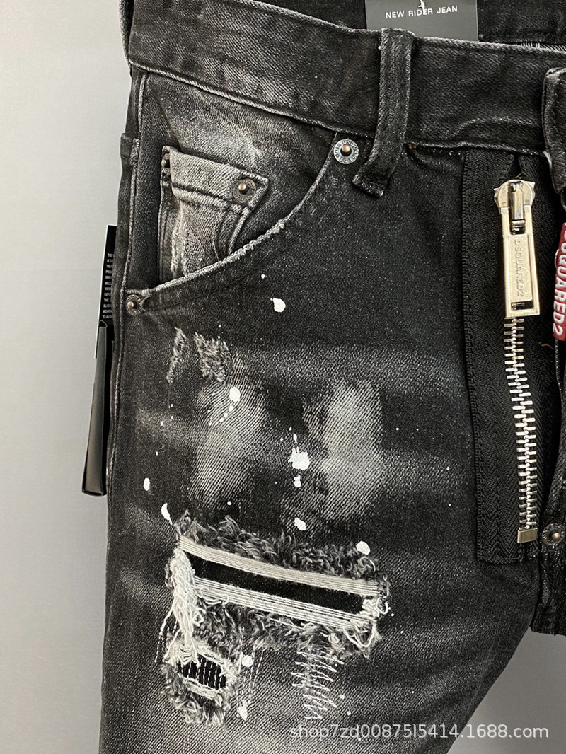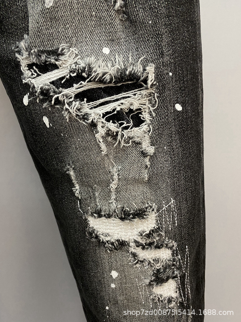 9856D2 이차 타이드 브랜드 청바지 유럽과 미국 크로스 보더 남자의 찢어진 스트레이트 데님 바지 유럽 역 데님