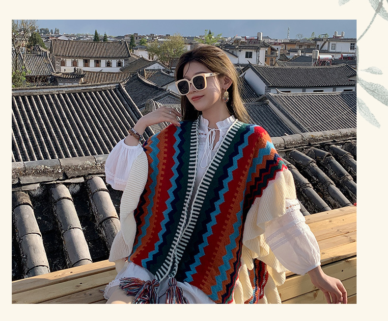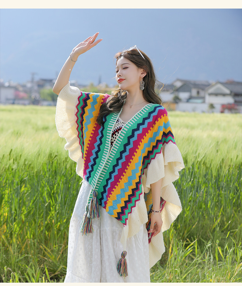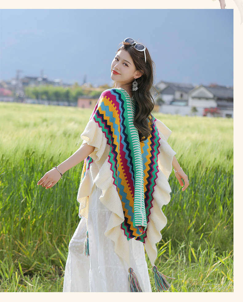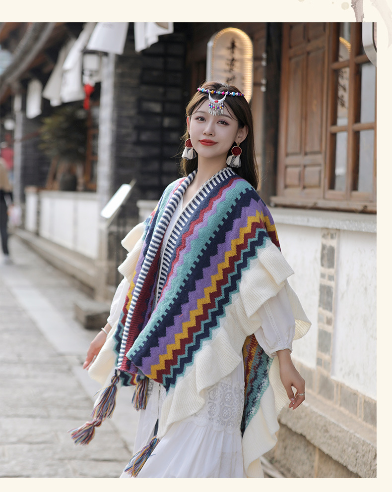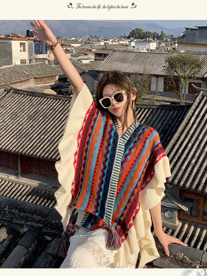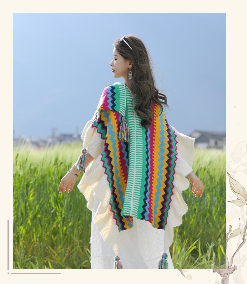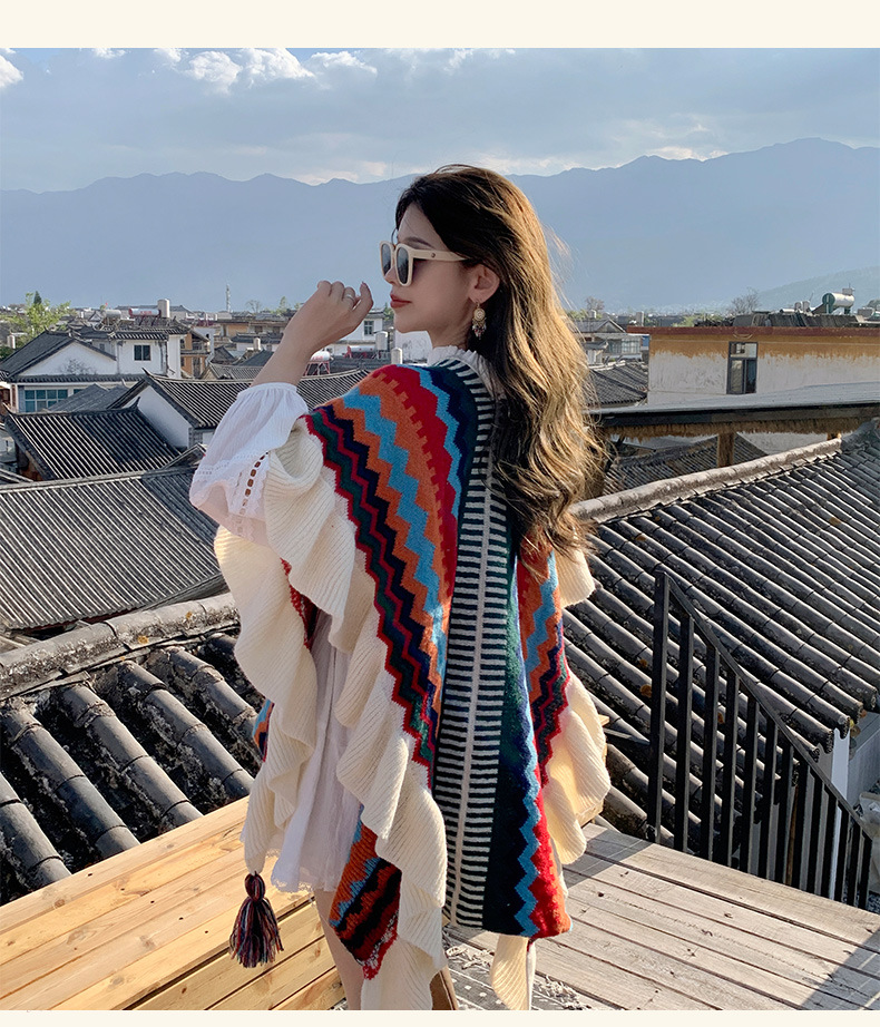윈난 리장 달리 여행복 보헤미안 스타일 에스닉 스타일 숄 여성용 착용 나무 귀 테 니트 망토스토어 가기