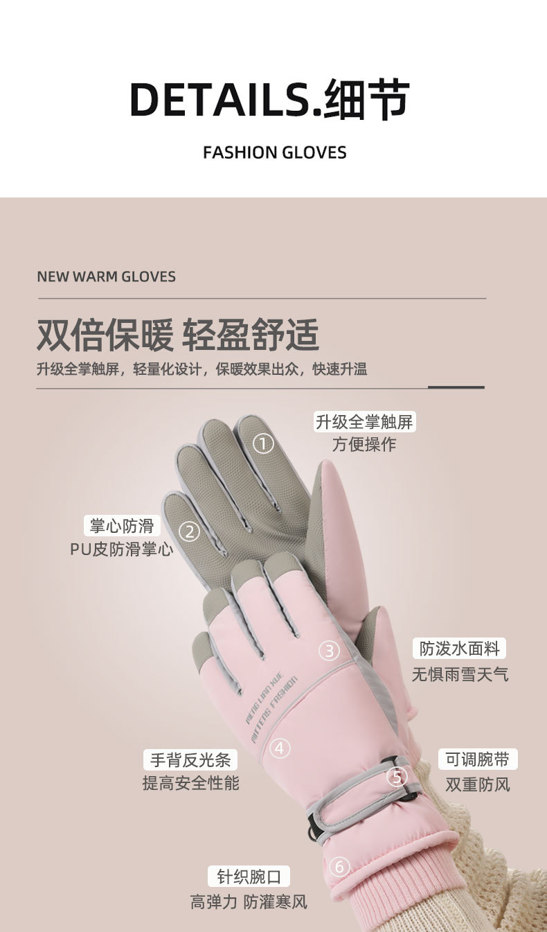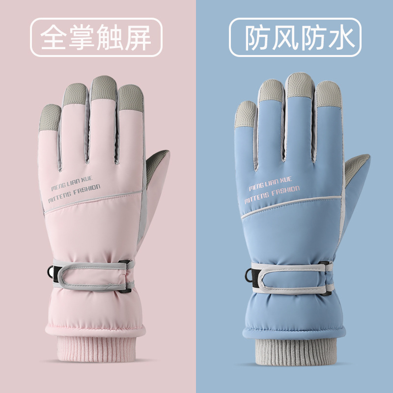 새로운 숙녀 스키 장갑 겨울 야외 승마 터치 스크린 미끄럼 방지 기모 두꺼운 방풍 따뜻한 장갑 방수