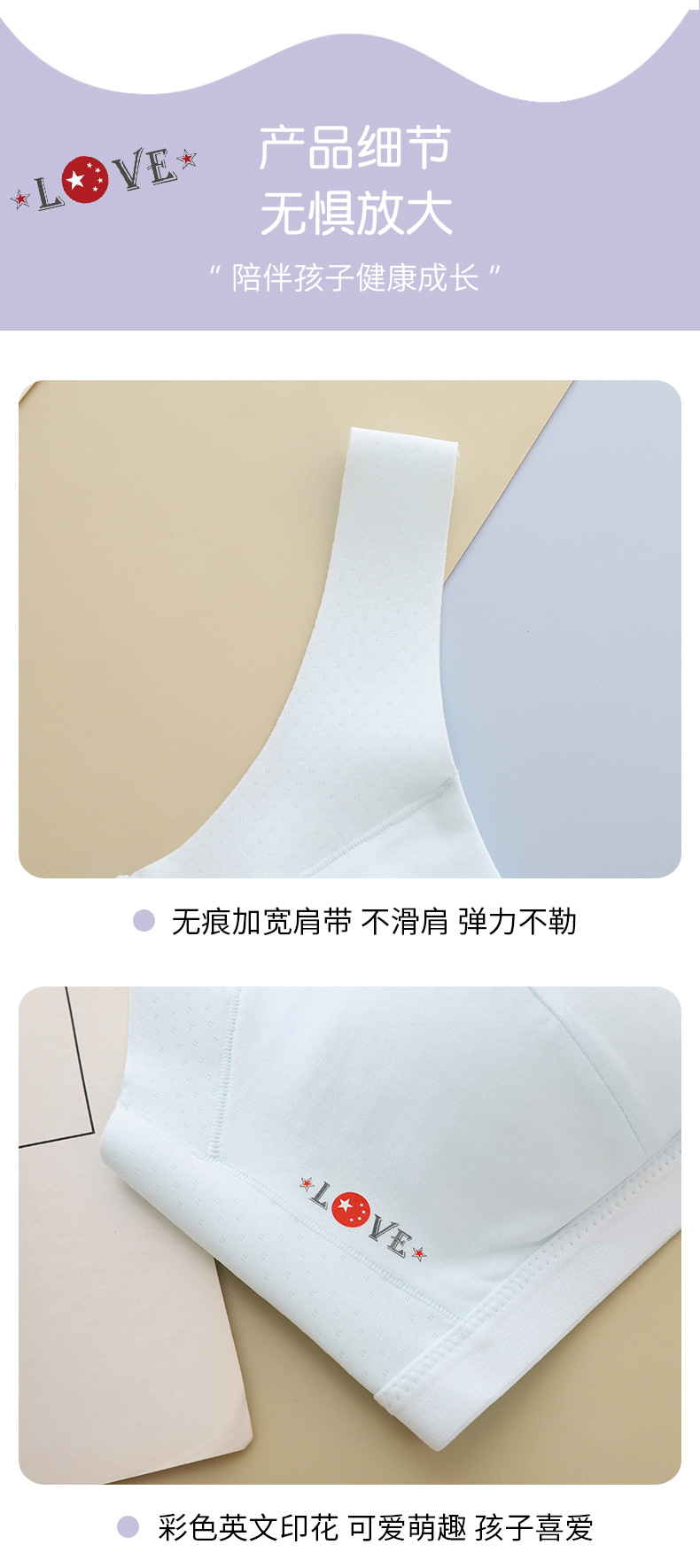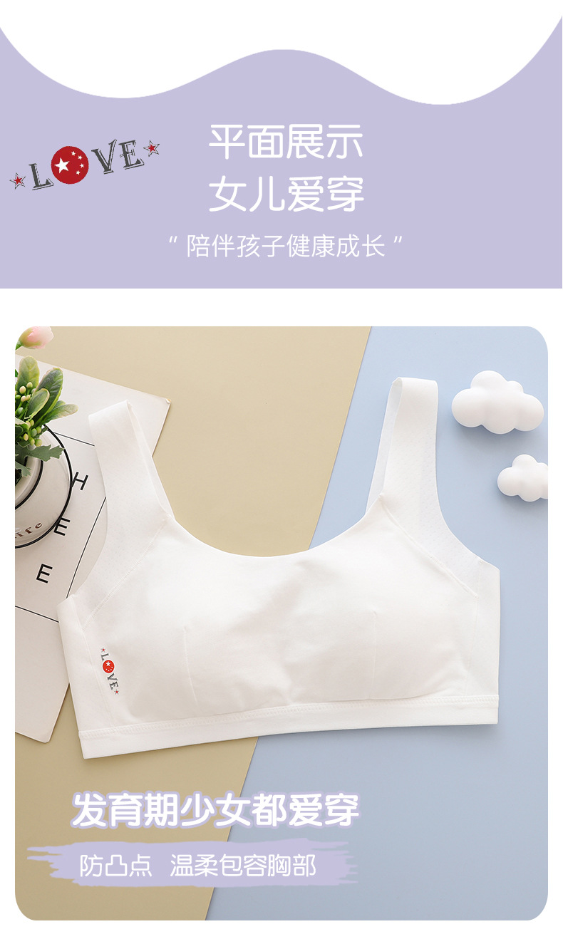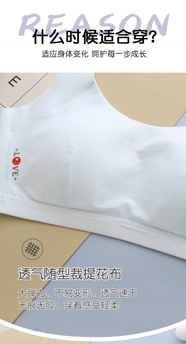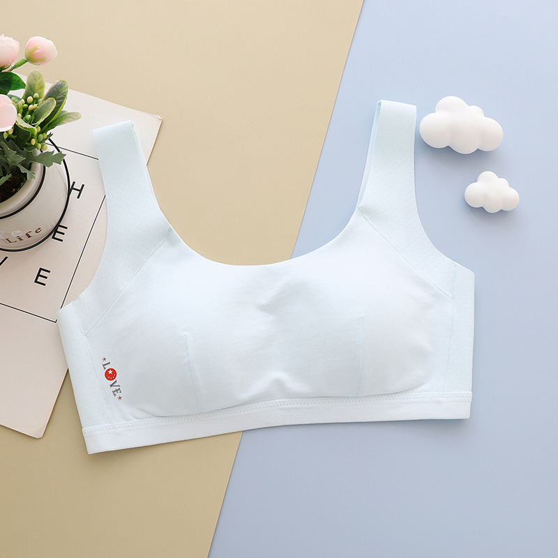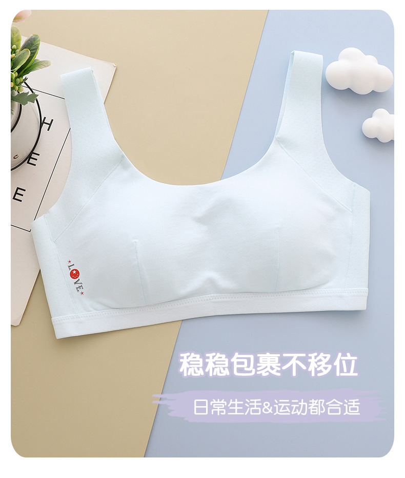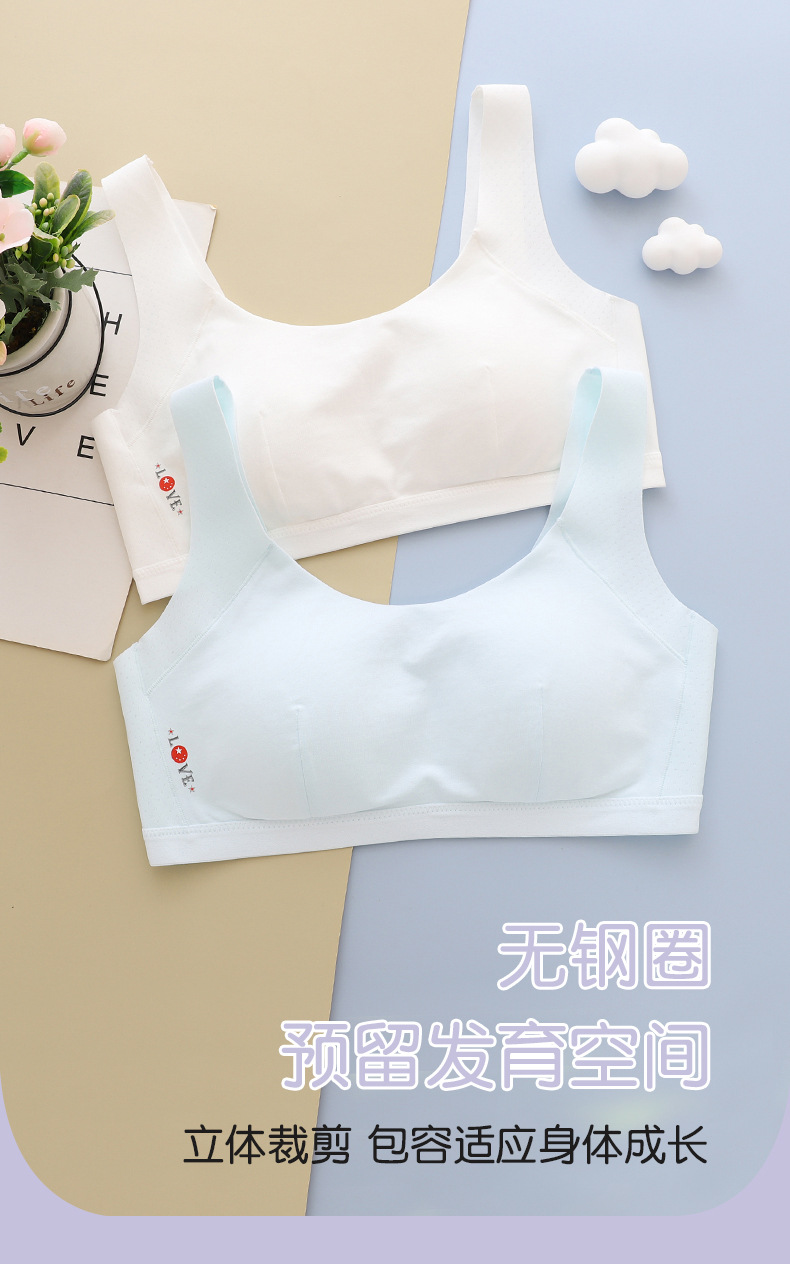 사춘기 여아 속옷 중학생 발달 스포츠 브라 3 단계 노 트레이스 스틸 링 작은 조끼스토어 가기