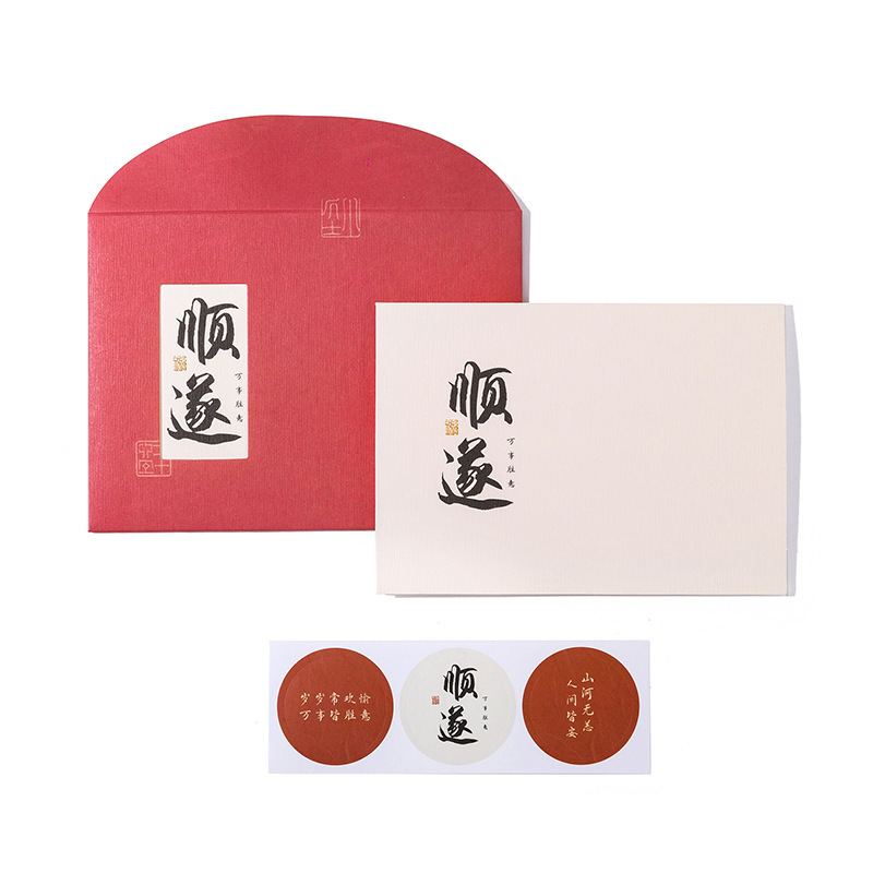 모 모가 읽는 것은 그가 원하는 일련의 인사말 카드와 봉투 세트 예술적 빈 단어 선물을주는 장식 축복 카드입니다.스토어 가기