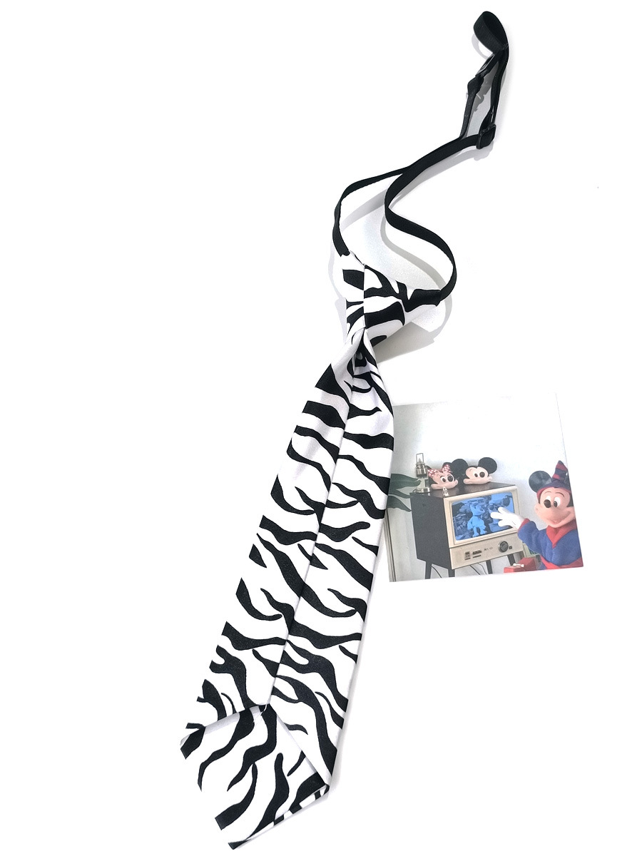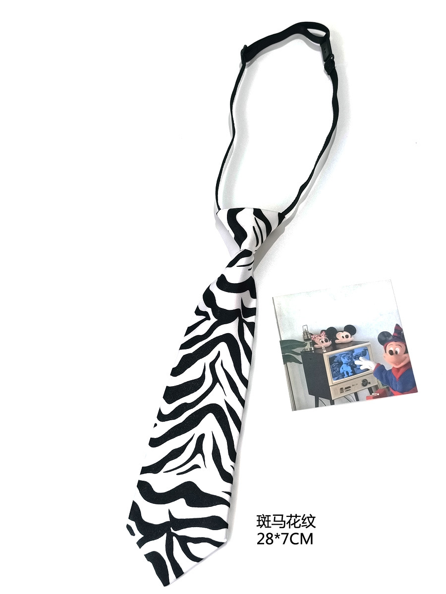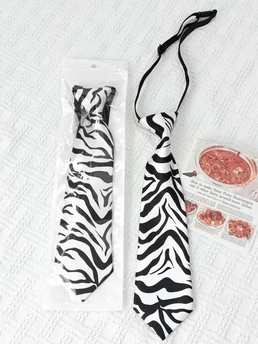 재미있는 귀여운 흑백 얼룩말 패턴 짧은 넥타이 무료 남성과 여성의 어린이 학생 장식 유행 새틴 조절 가능