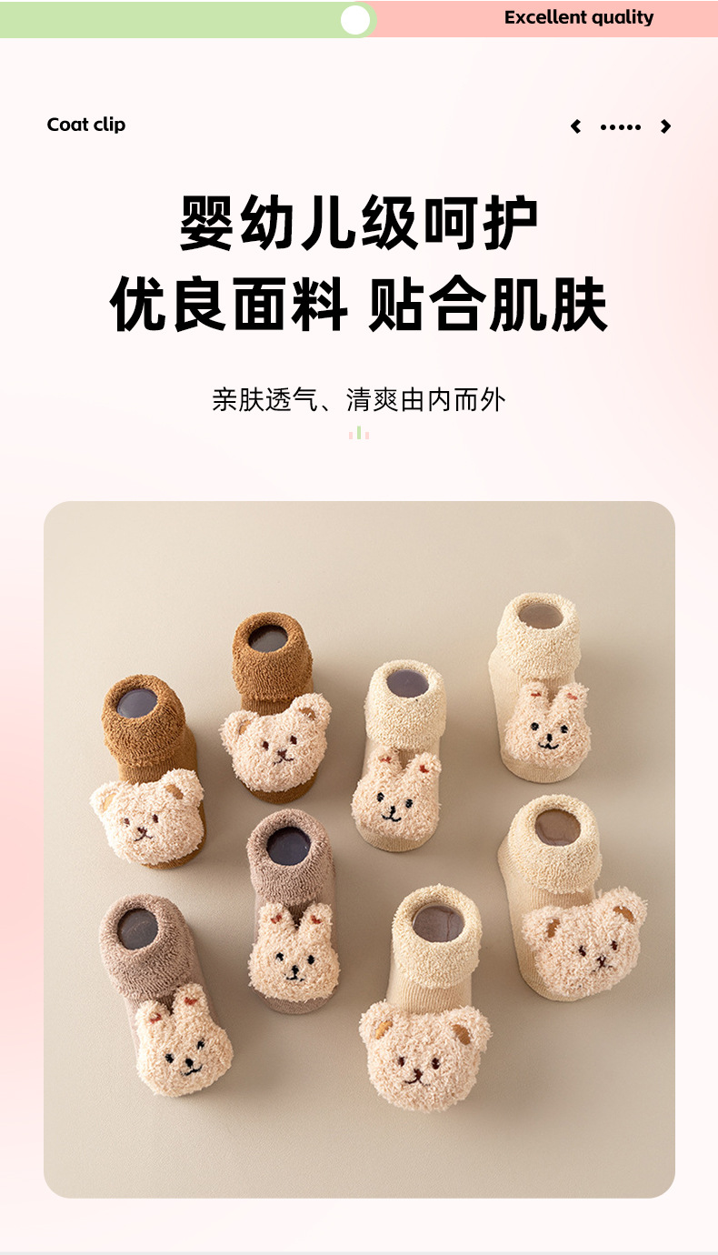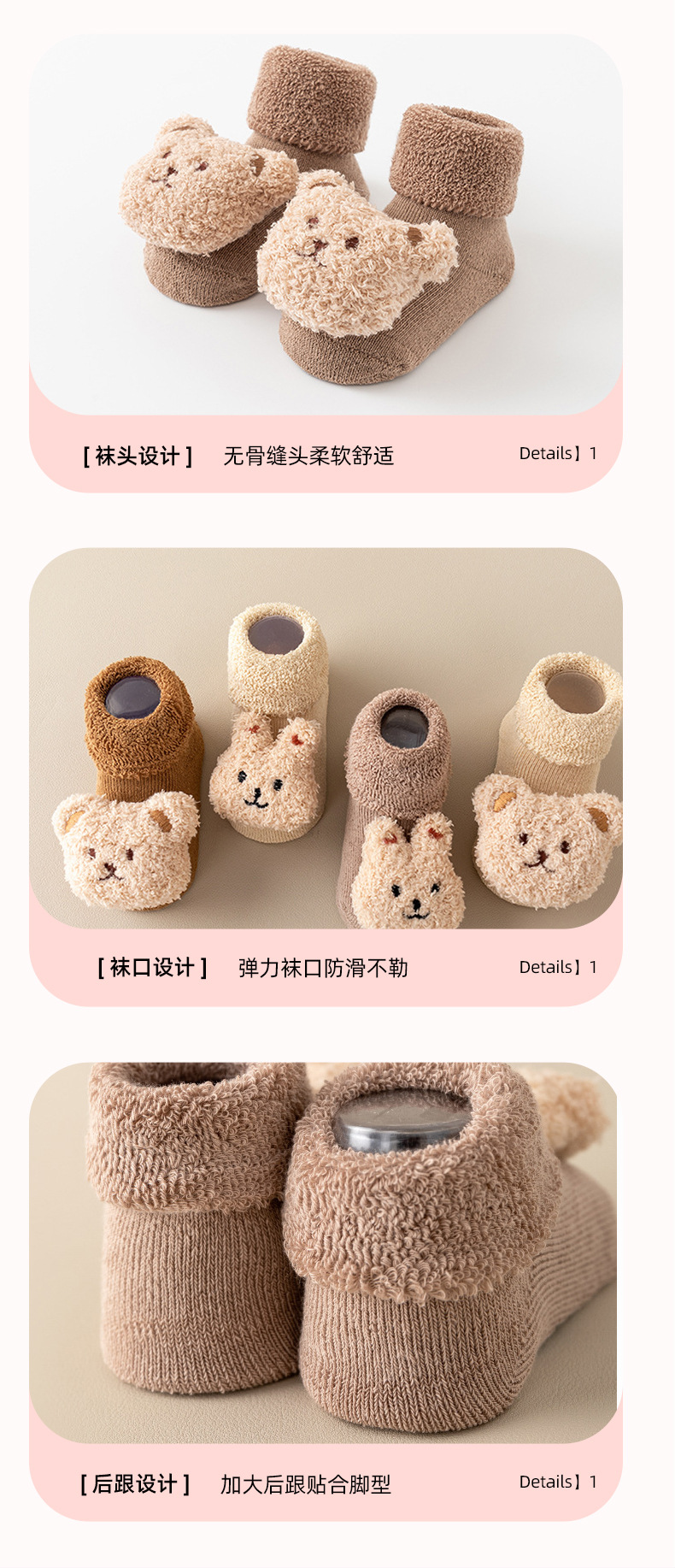 신생아 양말 겨울 두꺼운 아기 테리 따뜻한면 양말 만화 미끄럼 방지 유아 바닥 양말