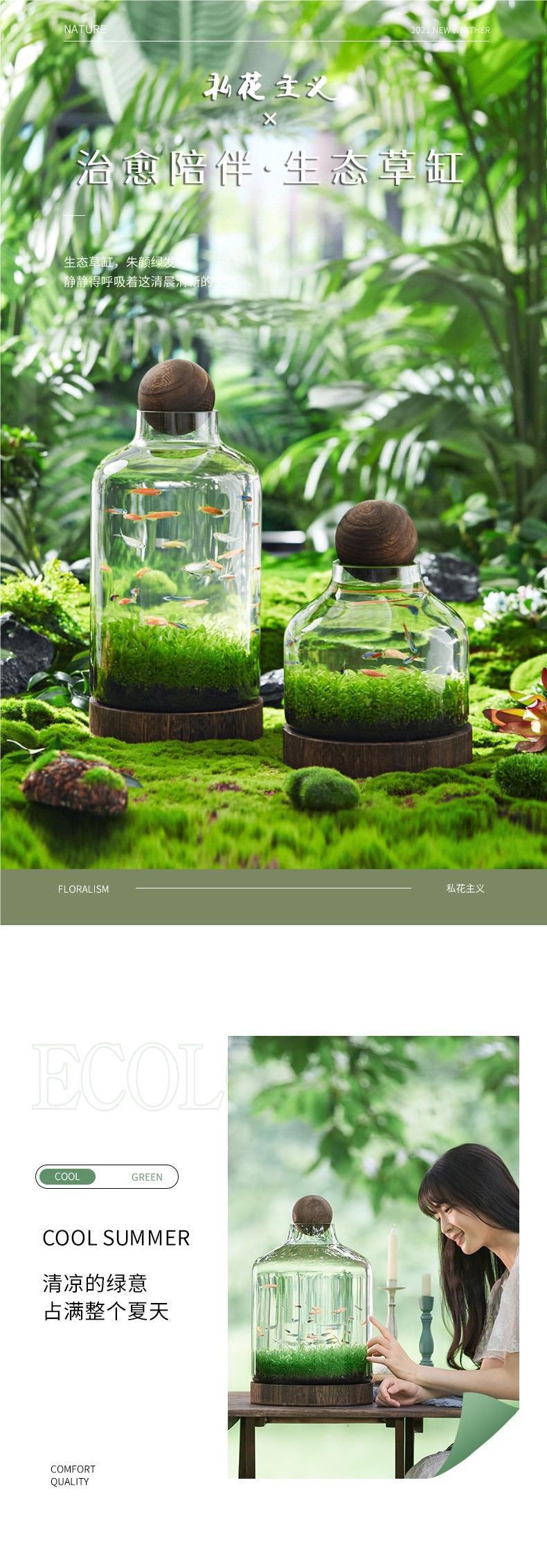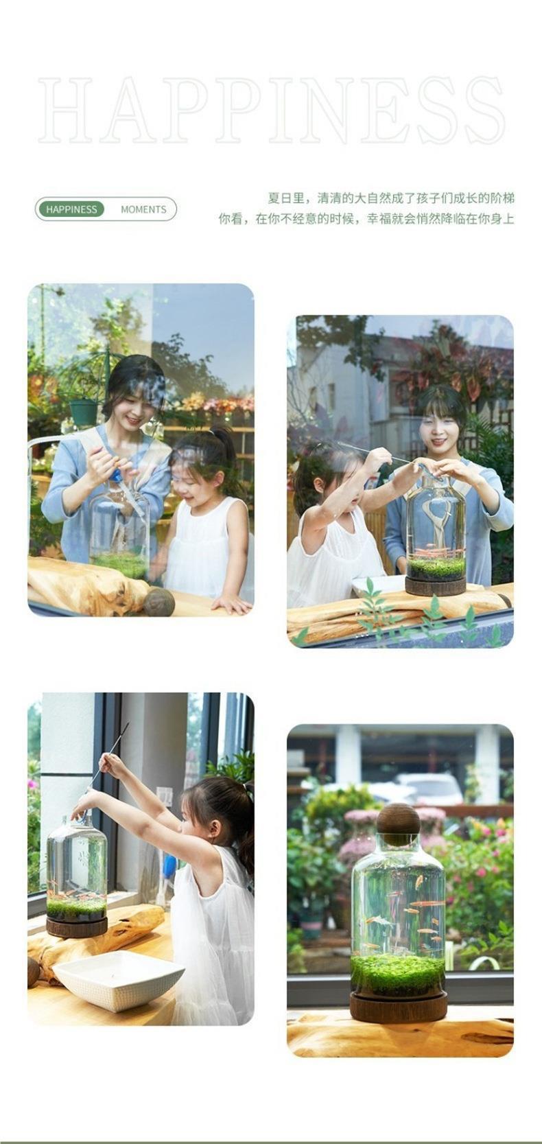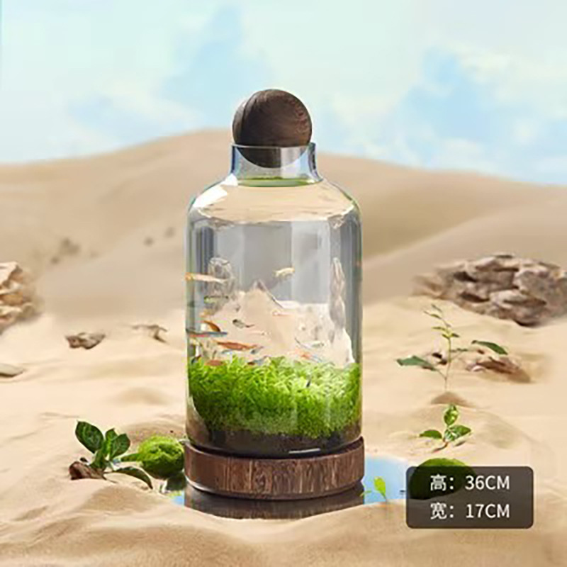 일본식 나무 바닥 투명 두꺼운 유리 어항 나무 쇼핑객 작은 물고기 풍경 생태 병 수경법 유리 꽃병