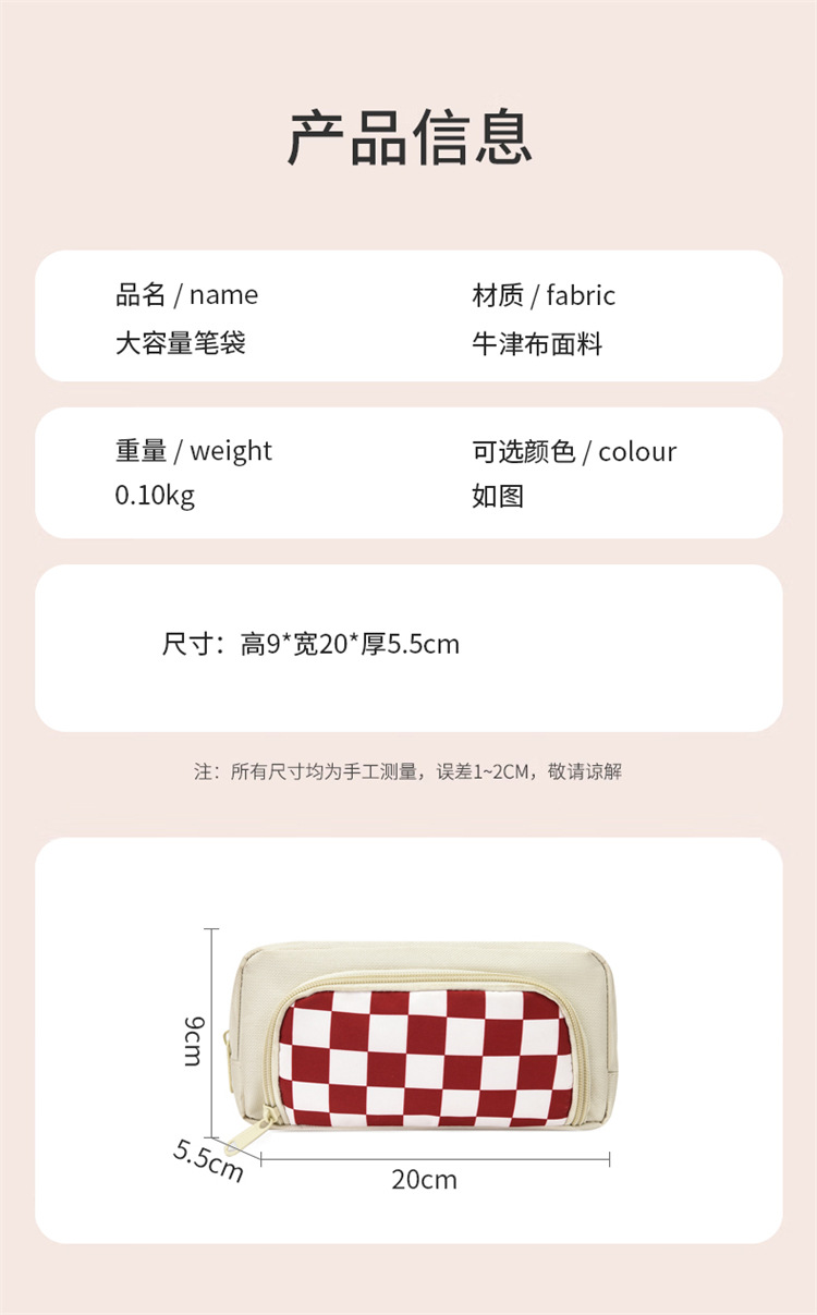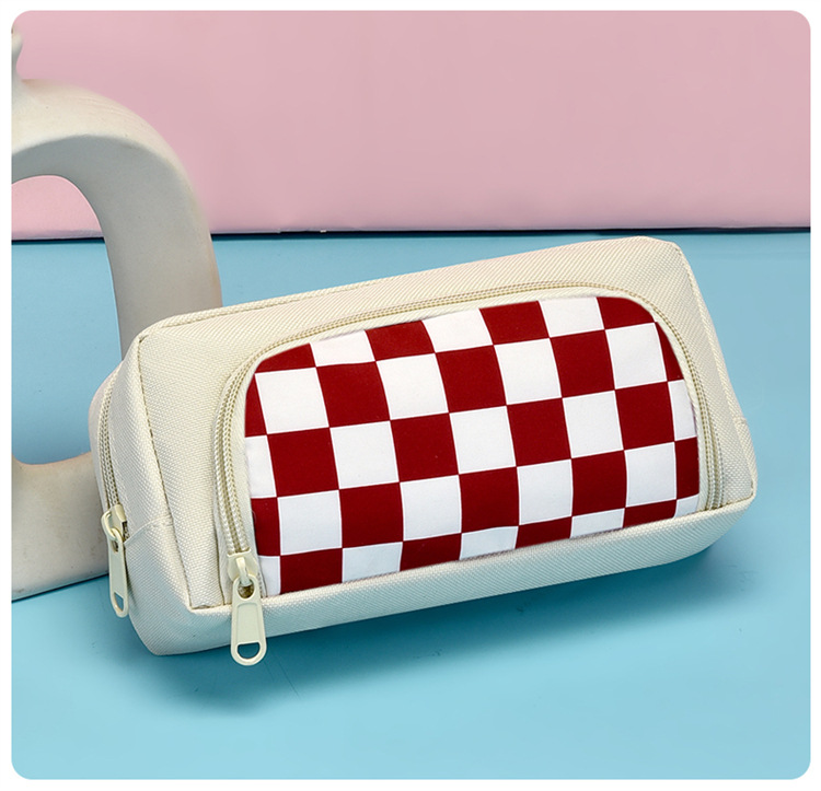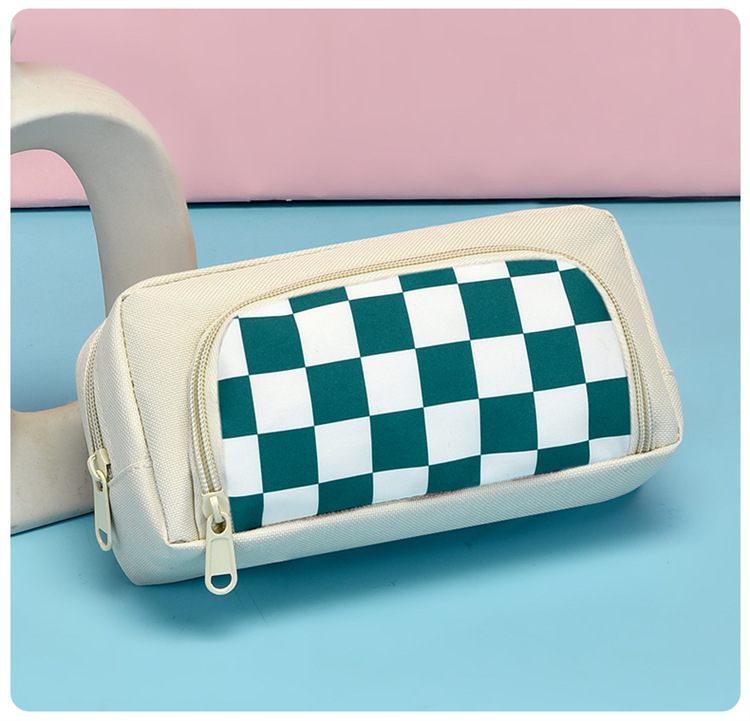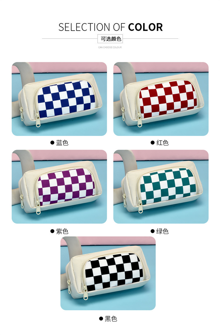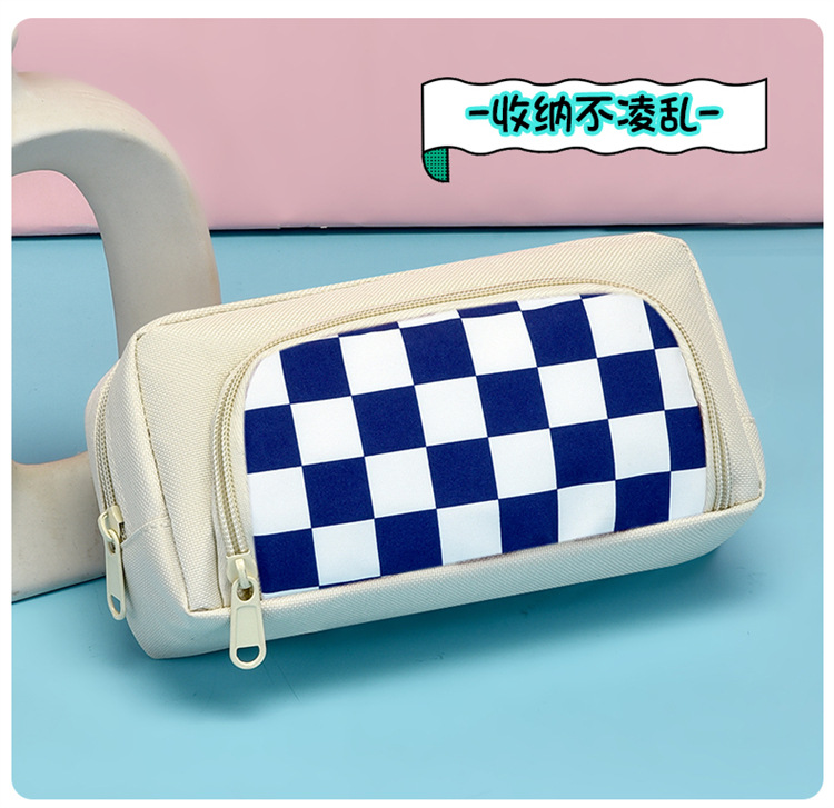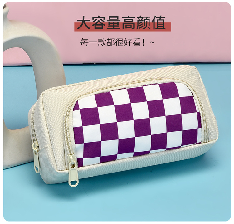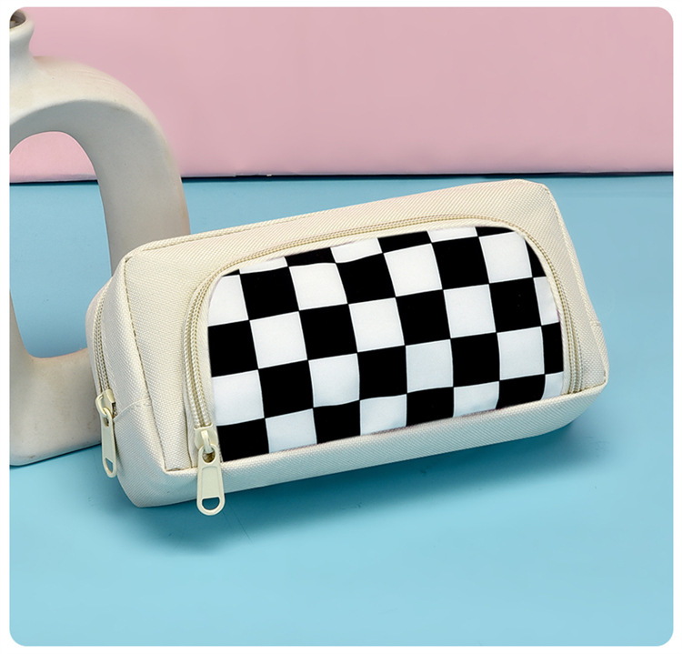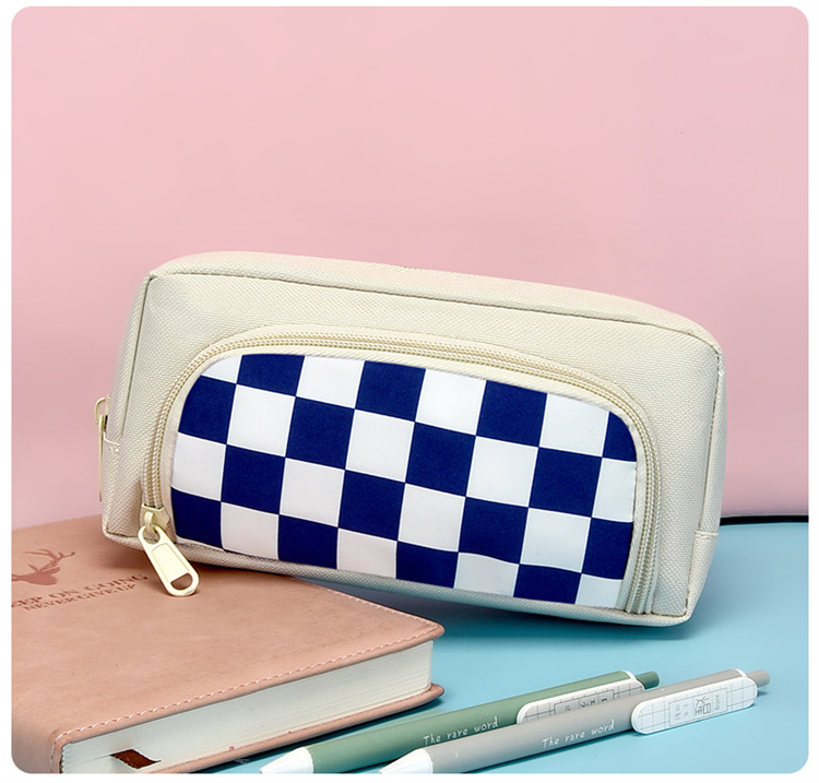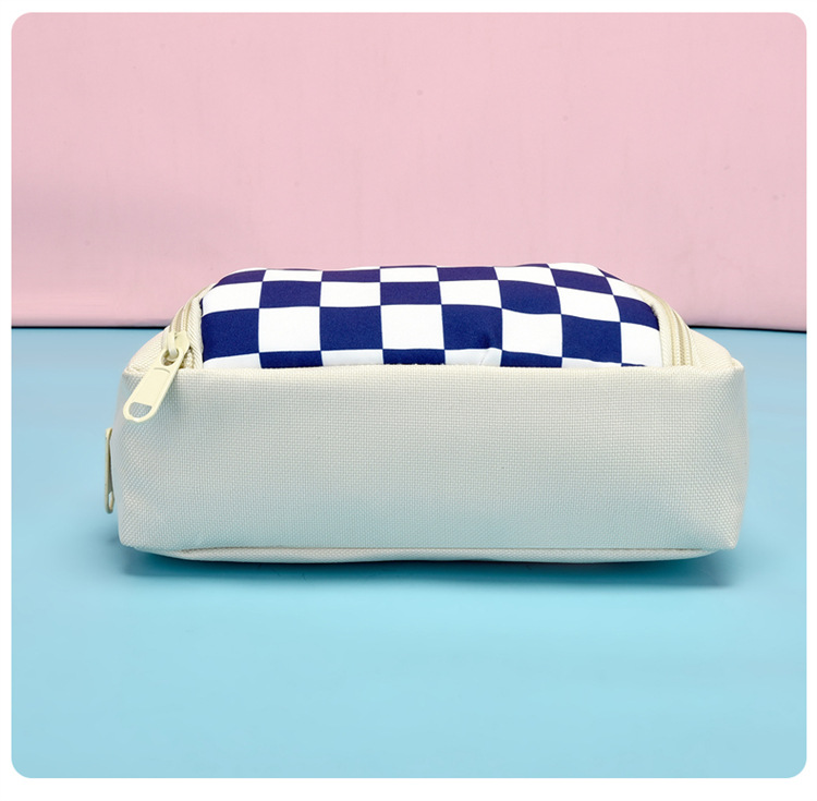 새로운 휴대용 심플 대용량 INS 스타일 학생 고가 문구 가방 연필 가방 일본 바둑판 연필 가방